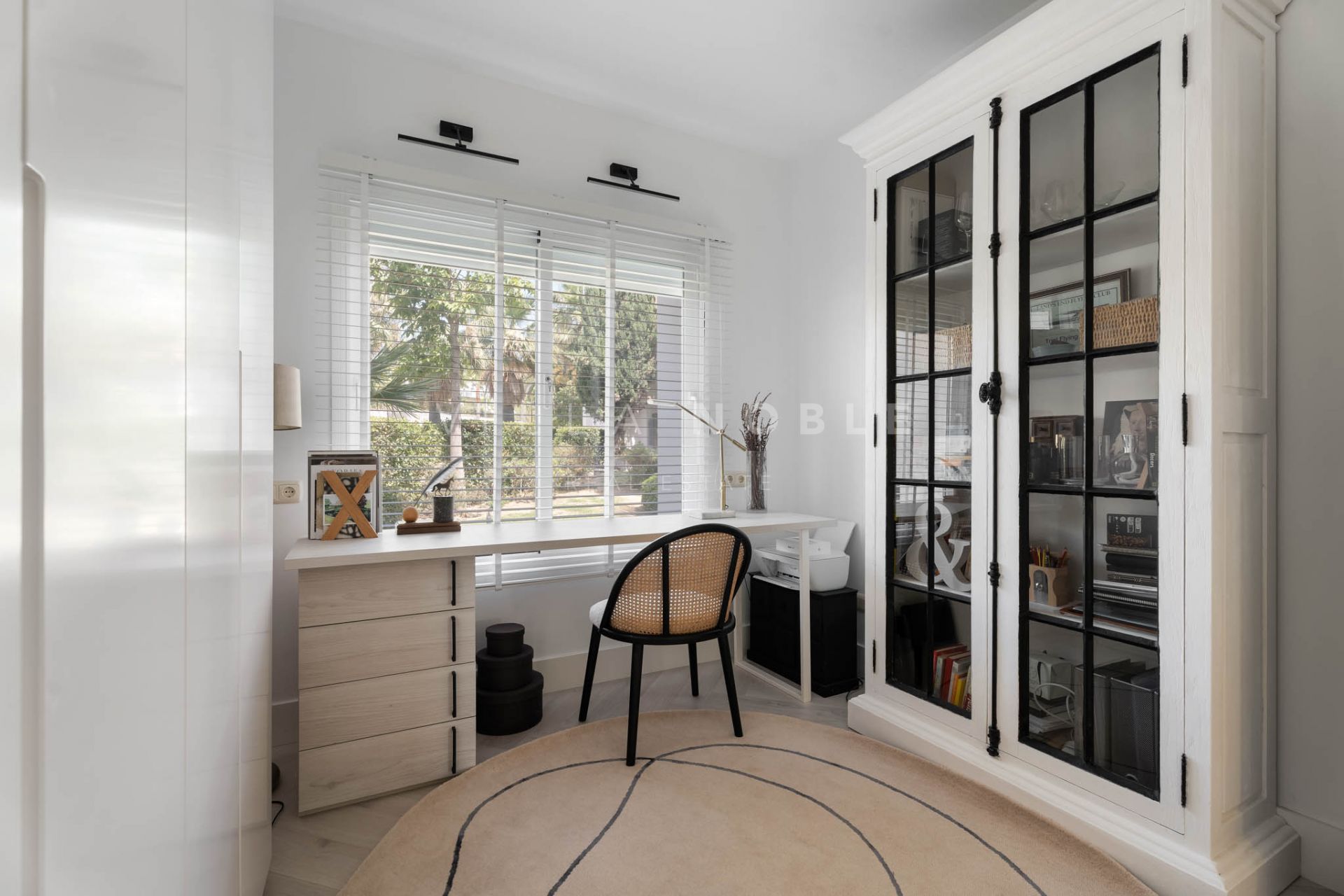 Die Wohnung umfasst eine offene Küche auf der zentralen Insel und integrierte Elektrodomésticos, die mit dem Gasthof und dem Wohnzimmer verbunden ist. Zu den jüngsten Reformen gehören Möbel und aktualisiertes Küchenzubehör, neue Badezimmer, Azulejos in den Bädern, neue Persien in allen Lüftungsöffnungen, komplette Innenausstattung, eine neue Klimaanlage, eine elektrische Kabelaufhängung und die Installationen von Fontanería. Die technischen Türen aus Kristallglas führen zu einer geräumigen Terrasse und einem großzügigen Garten, ideal zum Kommen und Entspannen in freier Luft.
