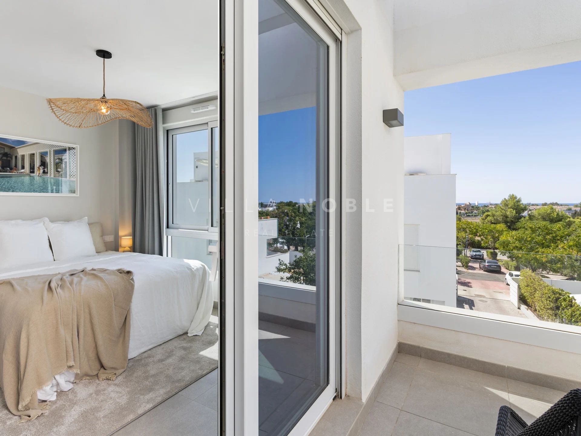 Willkommen in diesem brandneuen, lichtdurchfluteten Reihenhaus in einer exklusiven, geschlossenen Wohnanlage mit nur 7 Häusern. In perfekter Lage direkt hinter dem beliebten Real Padel Club erreichen Sie den Strand in nur 15 Gehminuten und erstklassige Golfplätze in wenigen Minuten.