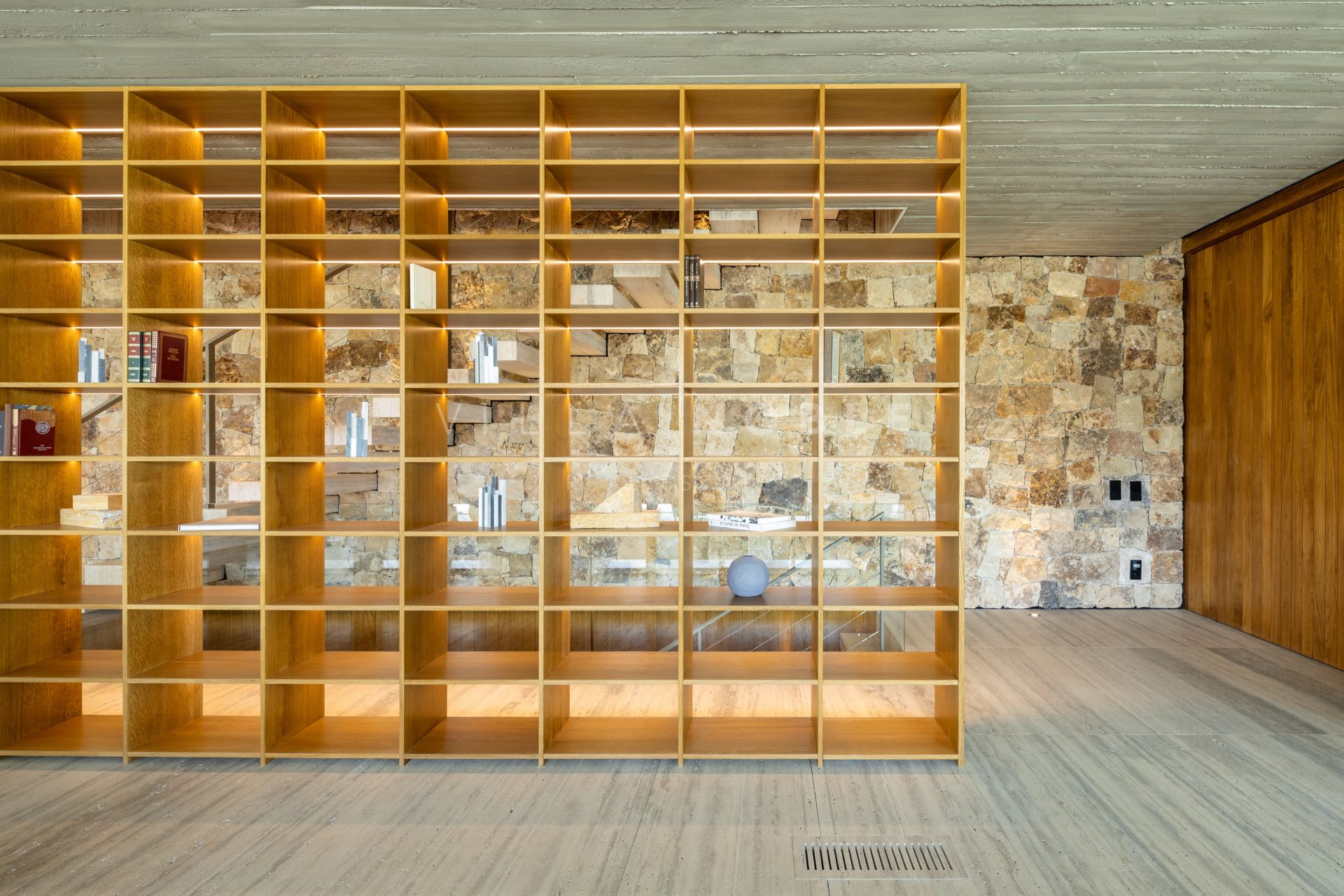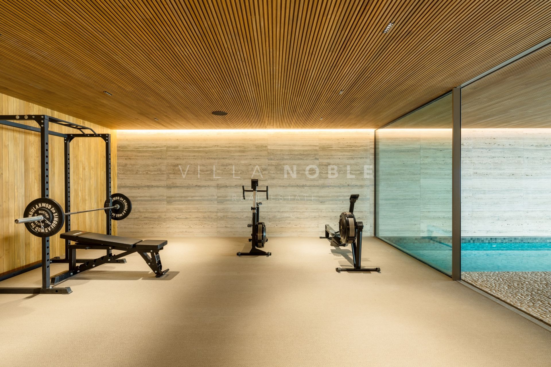Im Inneren zeugt jedes Detail von moderner Eleganz. Zu den Annehmlichkeiten gehören ein beheizter Pool, ein türkisches Bad, ein privater Kinoraum und ein Weinkeller. Diese luxuriösen Ausstattungsmerkmale schaffen ein Ambiente, in dem Luxus und Komfort aufeinandertreffen. Die Möbel der gesamten Villa spiegeln die modernen architektonischen Linien wider und sorgen für ein elegantes und einladendes Ambiente.