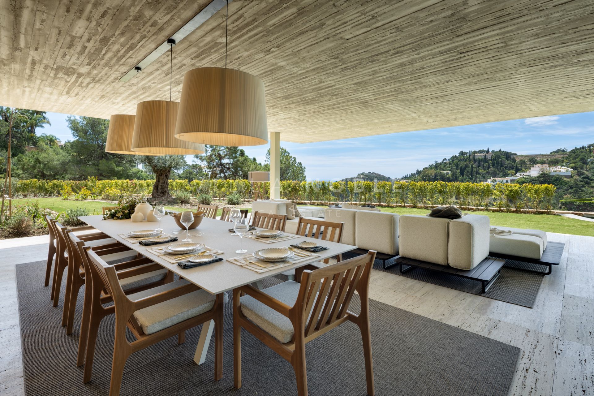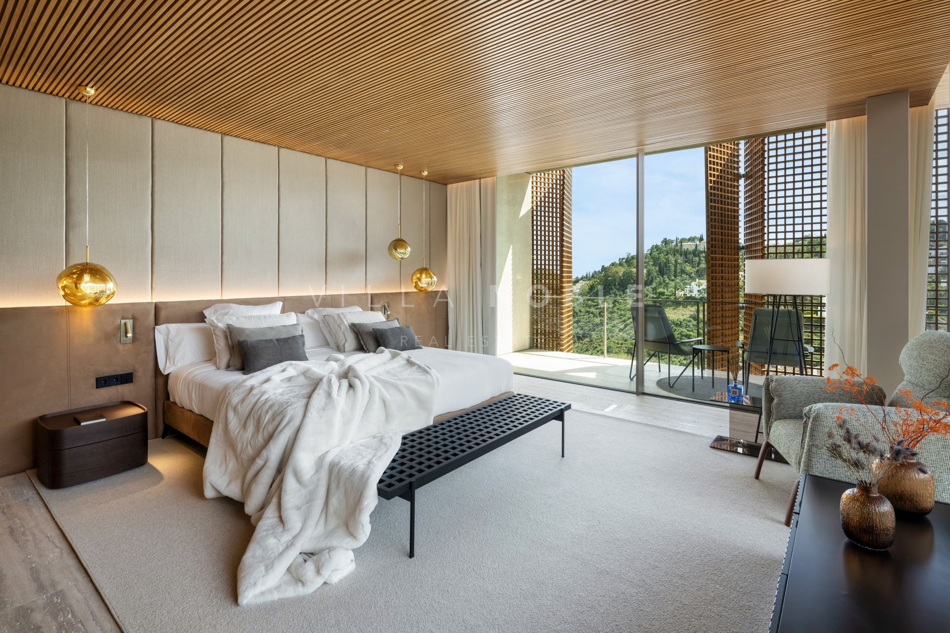 Die Villa Alia setzt neue Maßstäbe für gehobenes Wohnen im prestigeträchtigen Viertel El Madroñal in Benahavís. Entworfen wurde sie vom renommierten Architekten Marcio Kogan in Zusammenarbeit mit Lamar Development. Die nach Südwesten ausgerichtete Villa befindet sich in einer der begehrtesten Wohnanlagen und bietet einen atemberaubenden Panoramablick auf das Mittelmeer und die umliegenden Berge. Das Design fügt sich harmonisch in den wunderschön angelegten Garten ein, in dem ein makelloser Pool inmitten der natürlichen Umgebung den Mittelpunkt bildet.