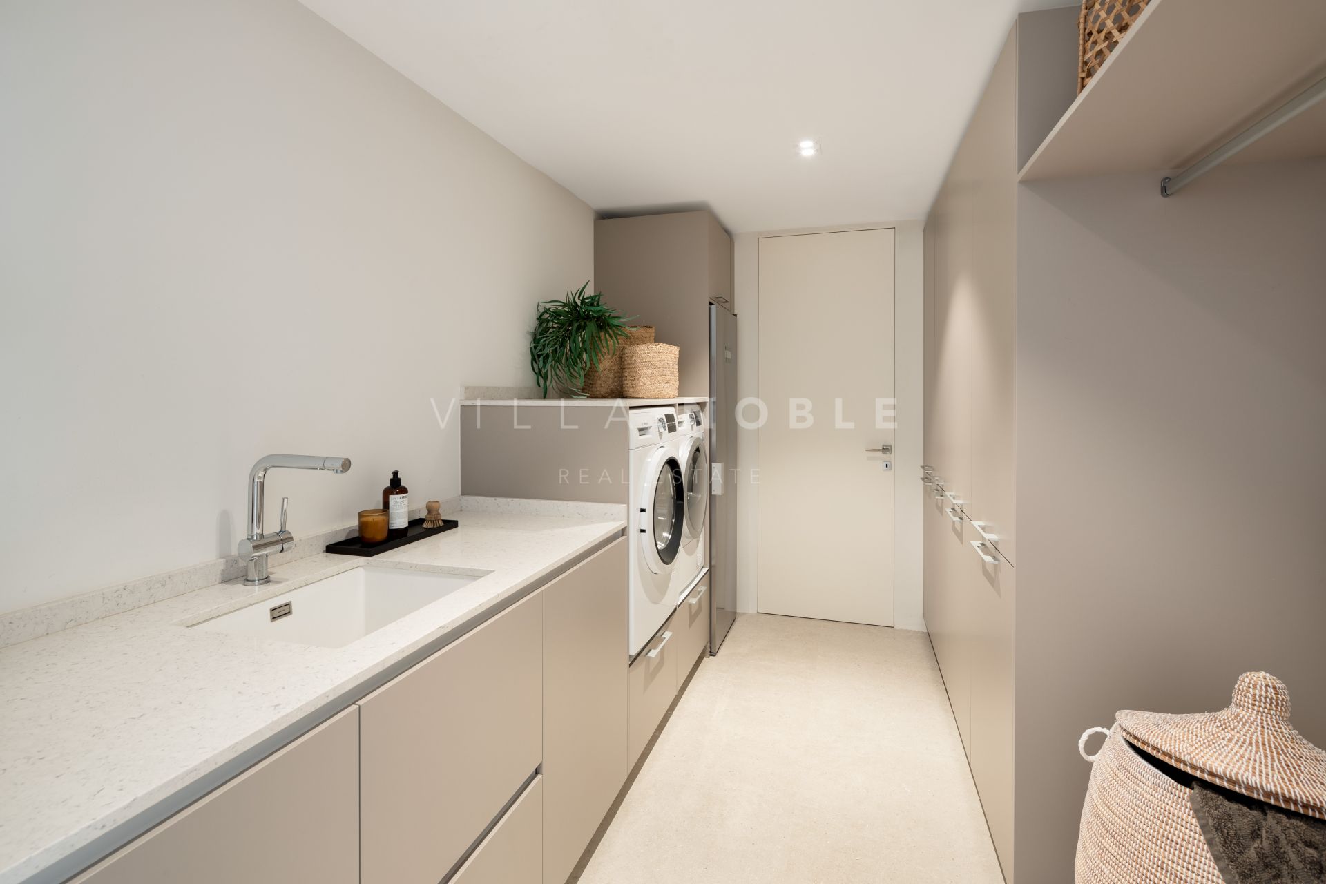Das Untergeschoss der Immobilie ist strategisch so konzipiert, dass es sowohl Freizeit als auch Funktionalität bietet. Es bietet einen Fitnessraum, einen gemütlichen Fernsehbereich, zusätzliche Schlafzimmer für Gäste und eine Garage. Dieser Bereich unterstreicht die Verbindung aus Eleganz und praktischem Design der Villa. Ein Aufzug, der alle Etagen verbindet, verbessert die Zugänglichkeit und den Komfort dieses exquisiten Hauses.