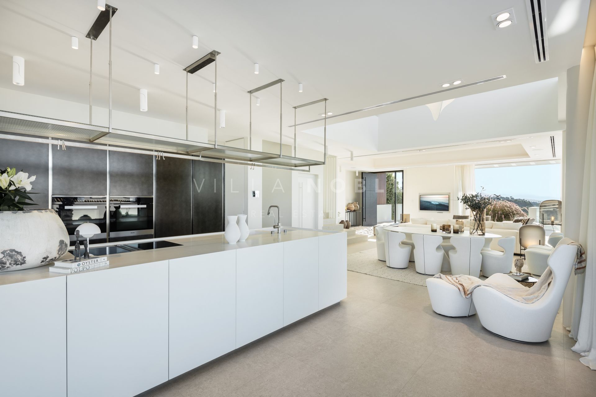 Eine moderne Villa in La Quinta steht zum Verkauf. Dank ihrer Südausrichtung bietet die Villa einen Panoramablick vom majestätischen Berg La Concha über das Mittelmeer bis nach Gibraltar und sorgt so für ein Gefühl der Ruhe und Entspannung.
