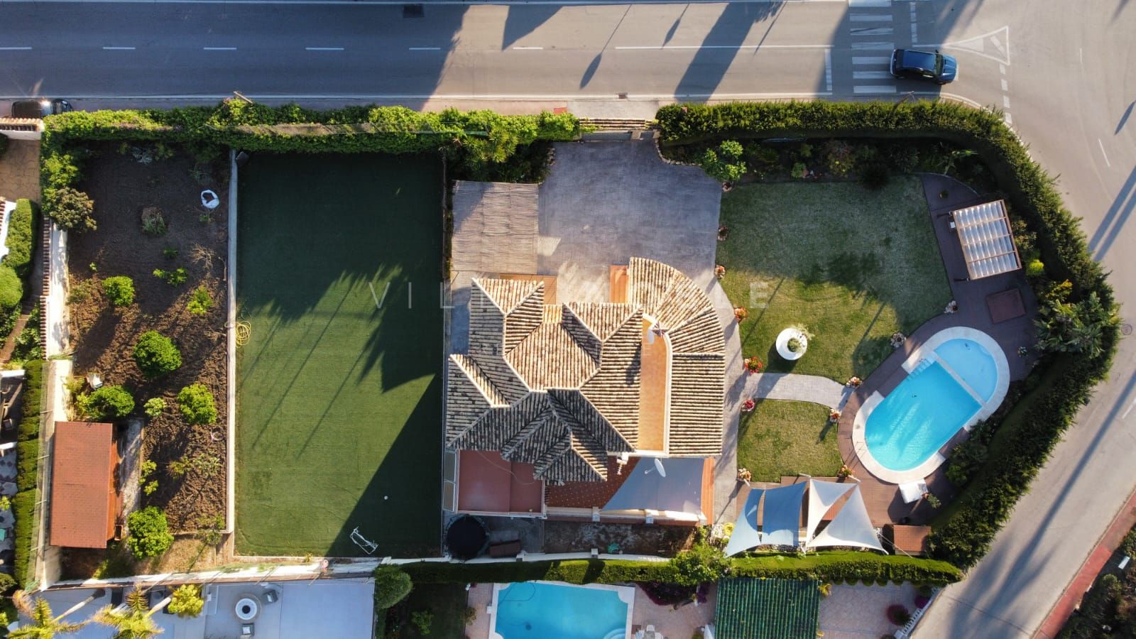 Villa zu verkaufen in Los Naranjos Golf, Nueva Andalucia mit 6 Schlafzimmer, 4 Badezimmer, gebaut in 1988 und hat Pool (privat), Garage (privat) und Garten (privat). Dimensionen: 256m² gebaut, 1826m² Grundstück, 256m² Innenbereich und 105m² Terrasse.