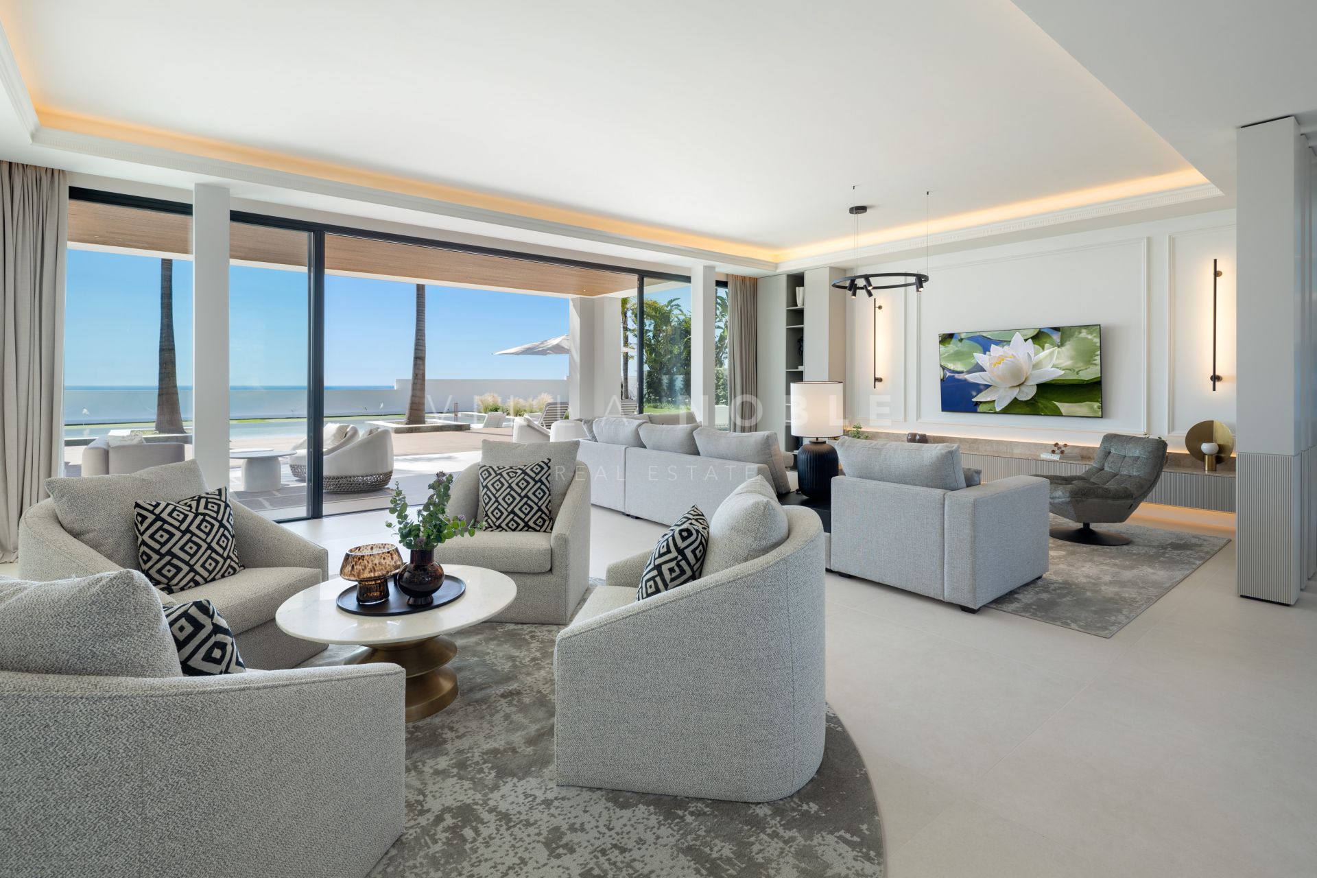 Die nach Süden ausgerichtete Villa bietet einen unverbaubaren Panoramablick auf das Meer und die Berge, der durch große, raumhohe Fenster eingefangen wird und die Schönheit der Natur ins Innere bringt. Die großzügige, dreistöckige Villa verfügt über 803 m² Wohnfläche und zusätzliche 196 m² Terrassen, die großzügige Wohnbereiche im Freien bieten, um das mediterrane Klima zu genießen. Die Immobilie verfügt über sieben Schlafzimmer, jedes mit eigenem Bad, die allen Bewohnern Privatsphäre und Komfort bieten.
