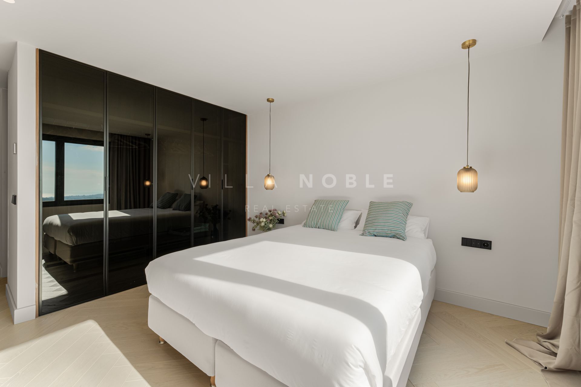 Das Duplex erstreckt sich über zwei Etagen. Im Erdgeschoss befinden sich drei wunderschön gestaltete Schlafzimmer mit jeweils eigenem Bad, die Stil und Komfort vereinen. Ein zusätzliches Gäste-WC sorgt für Funktionalität für Besucher. Im Obergeschoss befindet sich die Master-Suite. Eine private Terrasse und ein Whirlpool bieten Privatsphäre und Entspannung, perfekt ergänzt durch einen atemberaubenden Blick über Benahavís und die Küste. Insgesamt bietet das Anwesen vier Schlafzimmer – eines davon als Büro genutzt –, drei Badezimmer und ein Gäste-WC und ist somit ideal für Familien oder Gäste, die gerne Gäste beherbergen.