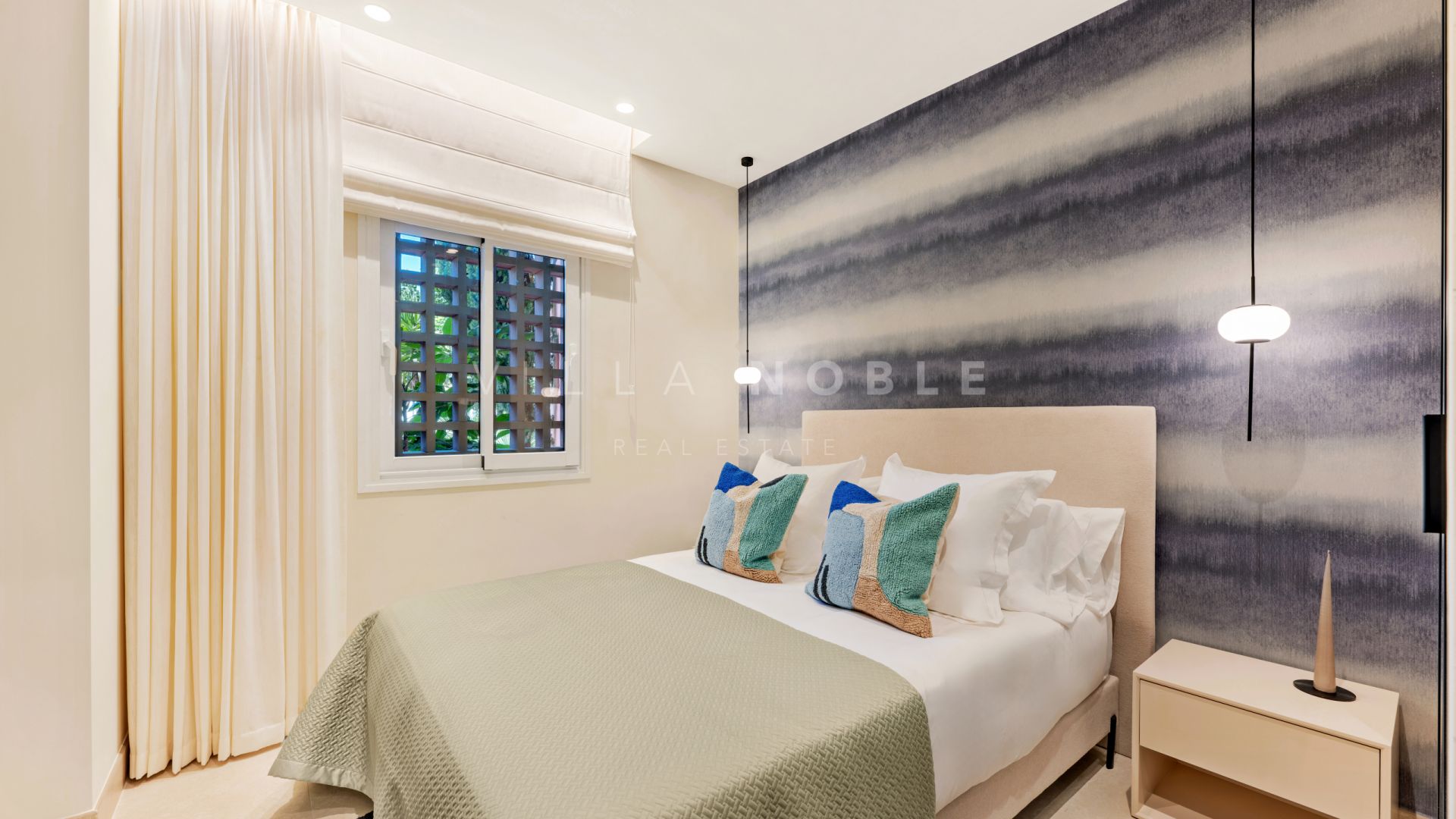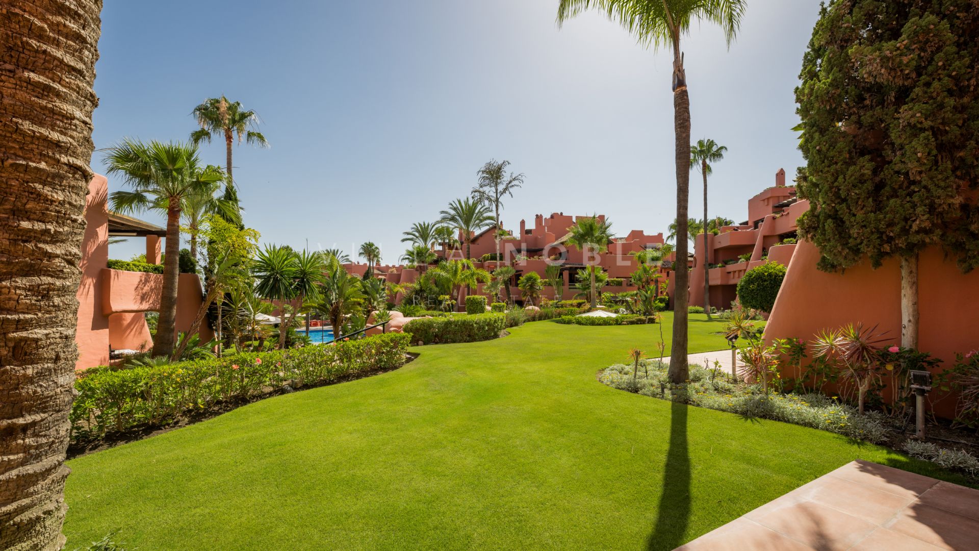 In der exklusiven Strandurbanisation Torre Bermeja gelegen, wurde diese nach Süden ausgerichtete Erdgeschosswohnung mit 3 Schlafzimmern und 3 Bädern vollständig nach höchsten Qualitätsstandards renoviert und bietet stilvolles Wohnen in einer der begehrtesten Wohnanlagen der Costa del Sol.