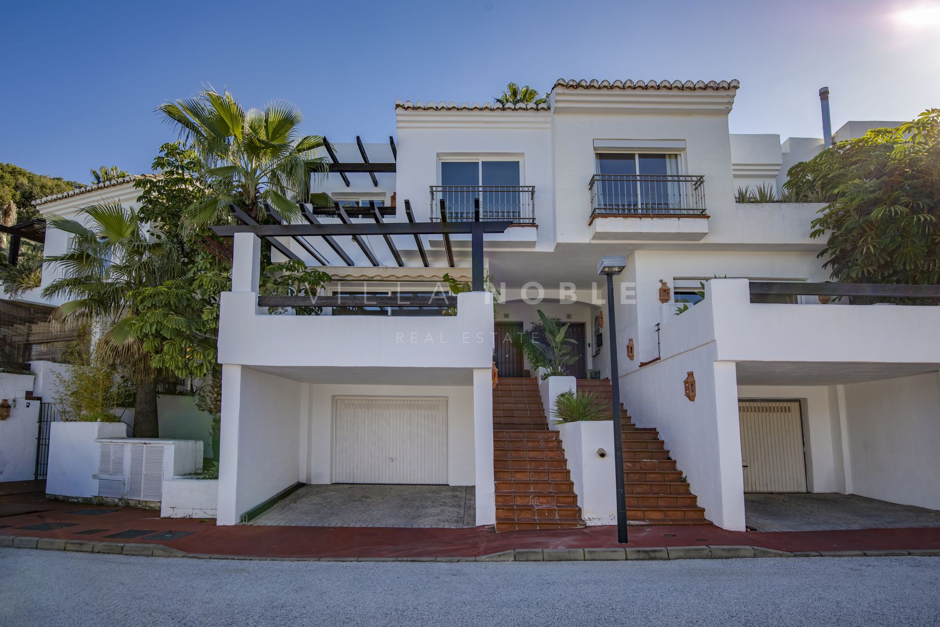 Dieses spektakuläre Stadthaus befindet sich in einer der begehrtesten Wohngegenden, nur wenige Minuten vom pulsierenden Leben der Goldenen Meile Marbellas entfernt.