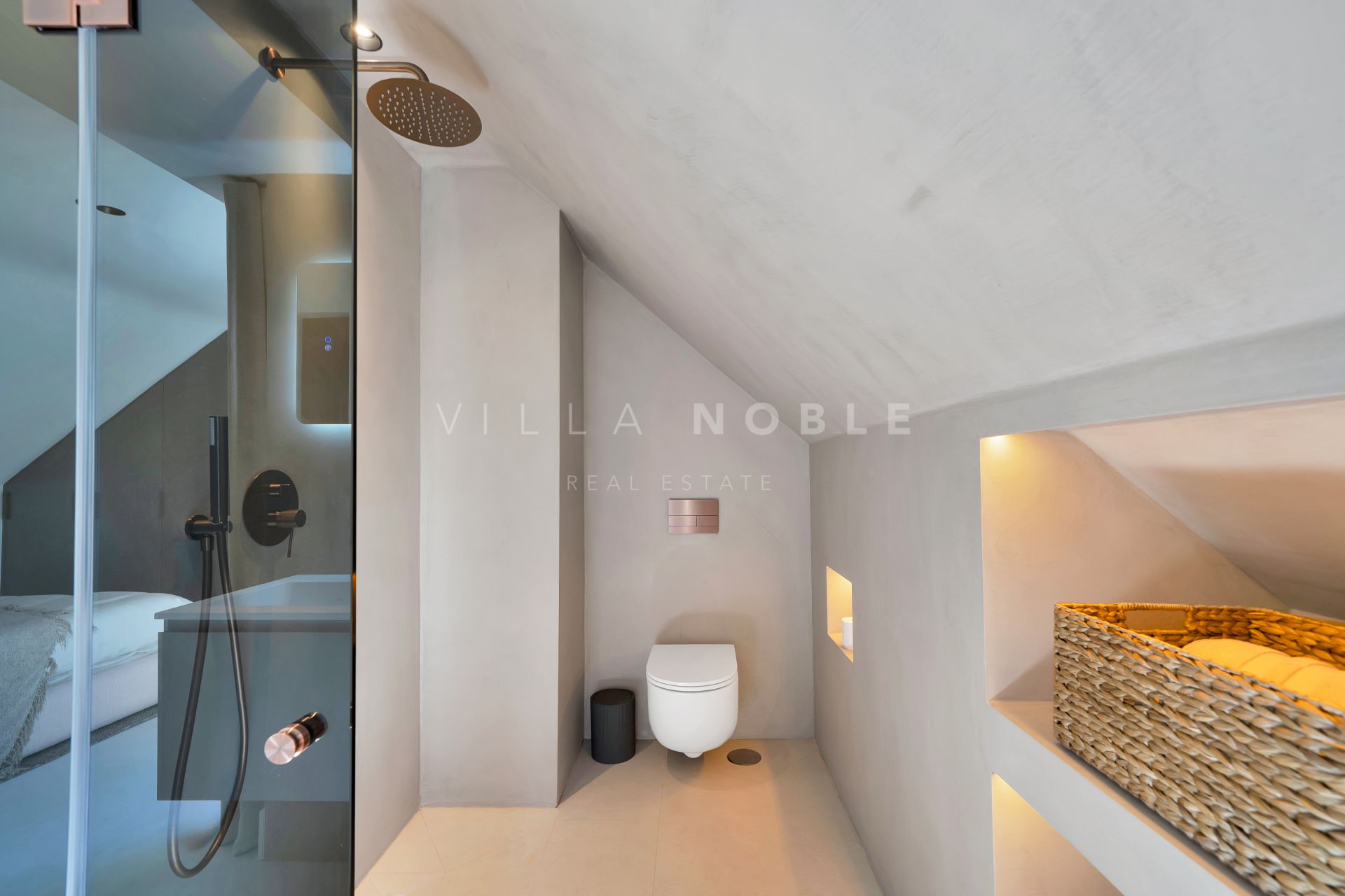 On the first floor, two en-suite bedrooms provide privacy and natural light. Each bathroom is finished with high-quality materials and modern fixtures, creating a calm and functional environment.