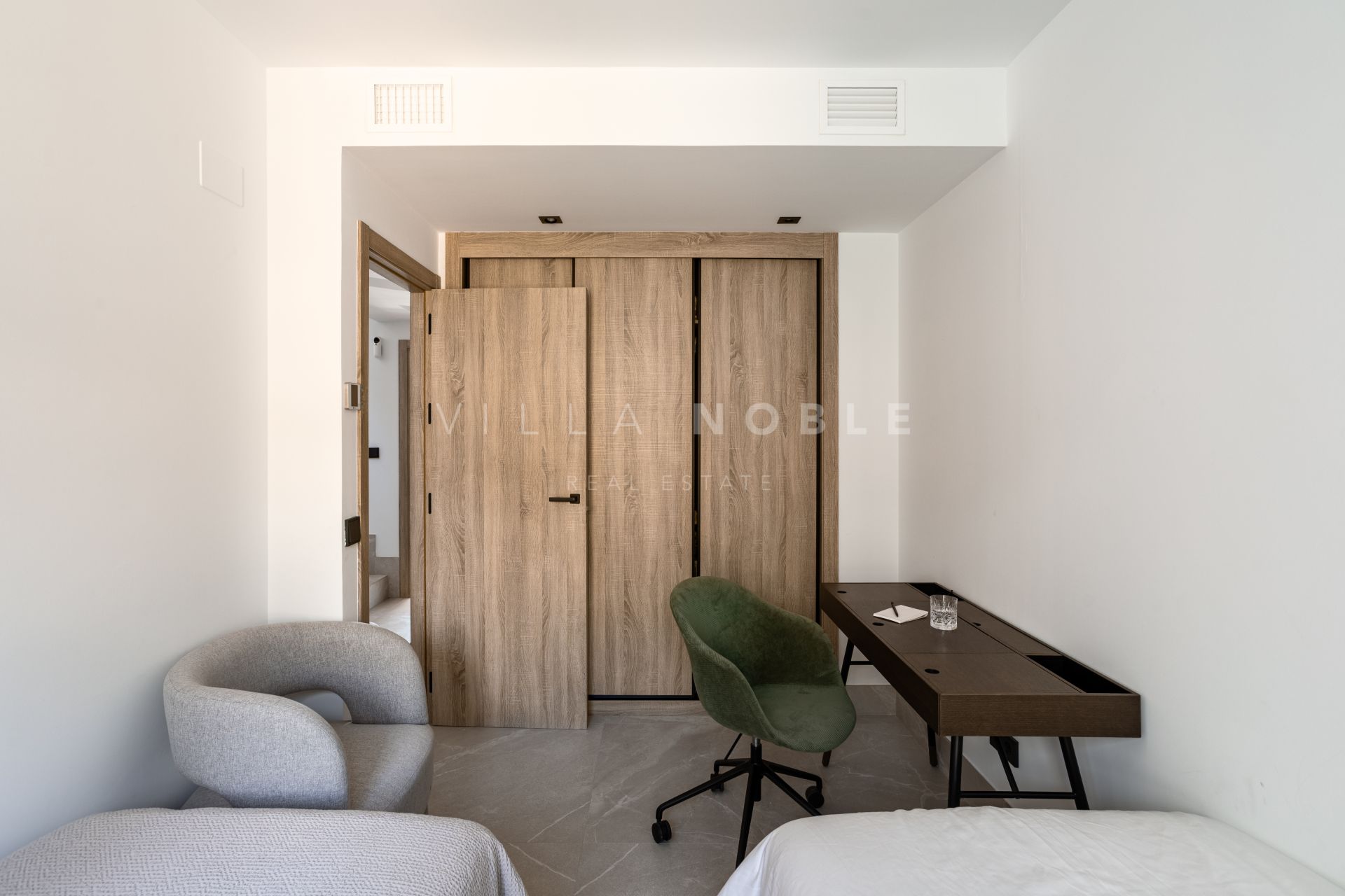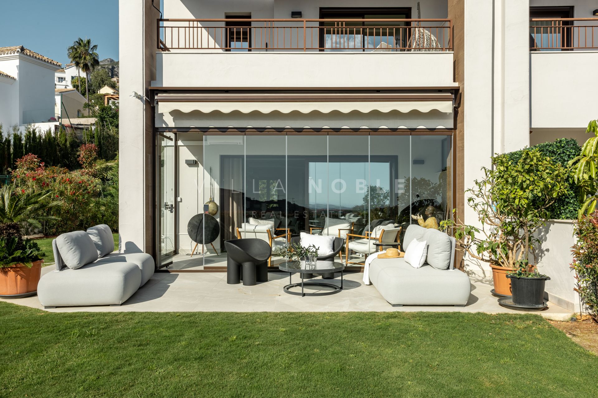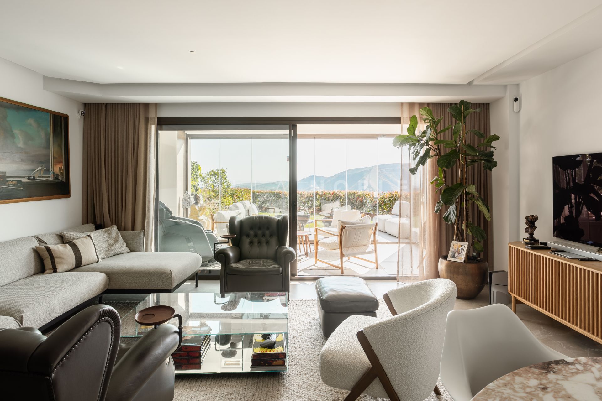 Just a mere 7 minutes from Marbella\‘s Golden Mile, Puerto Banús, and the stunning beaches, this location offers the perfect blend of seclusion and convenience. Set within a private, gated community, this striking property features three bedrooms, three bathrooms, open-concept space ideal for both relaxation and entertaining. The American-style kitchen, outfitted with top-of-the-line appliances, flows effortlessly into the generous living and dining areas, which are bathed in natural light and offer spectacular views from every corner. From custom cabinetry to contemporary fixtures, the home’s interior radiates sophistication at every turn.