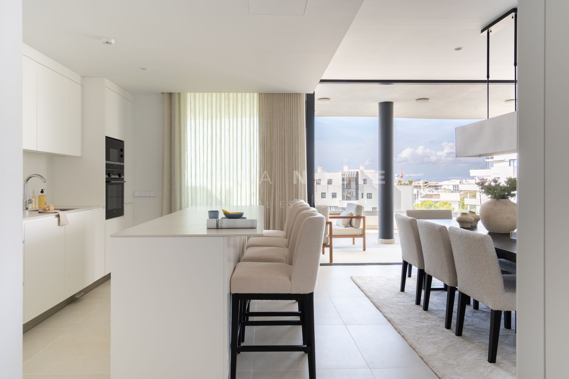 The apartment features bright, spacious interiors with a sleek contemporary design, offering 3 bedrooms, 2 bathrooms, and an impressive 32 m² terrace with panoramic sea views — perfect for relaxing and enjoying the surroundings.