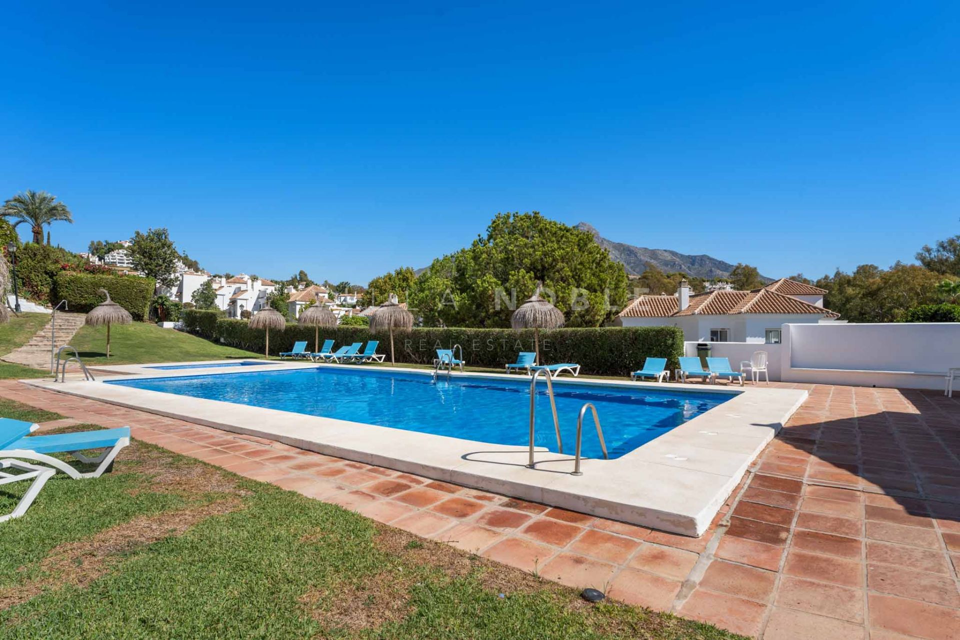 Located in El Naranjal, one of Nueva Andalucía’s established gated communities, this townhouse is set in the heart of Marbella’s Golf Valley, surrounded by courses such as Los Naranjos, Real Club Las Brisas, and Aloha Golf.