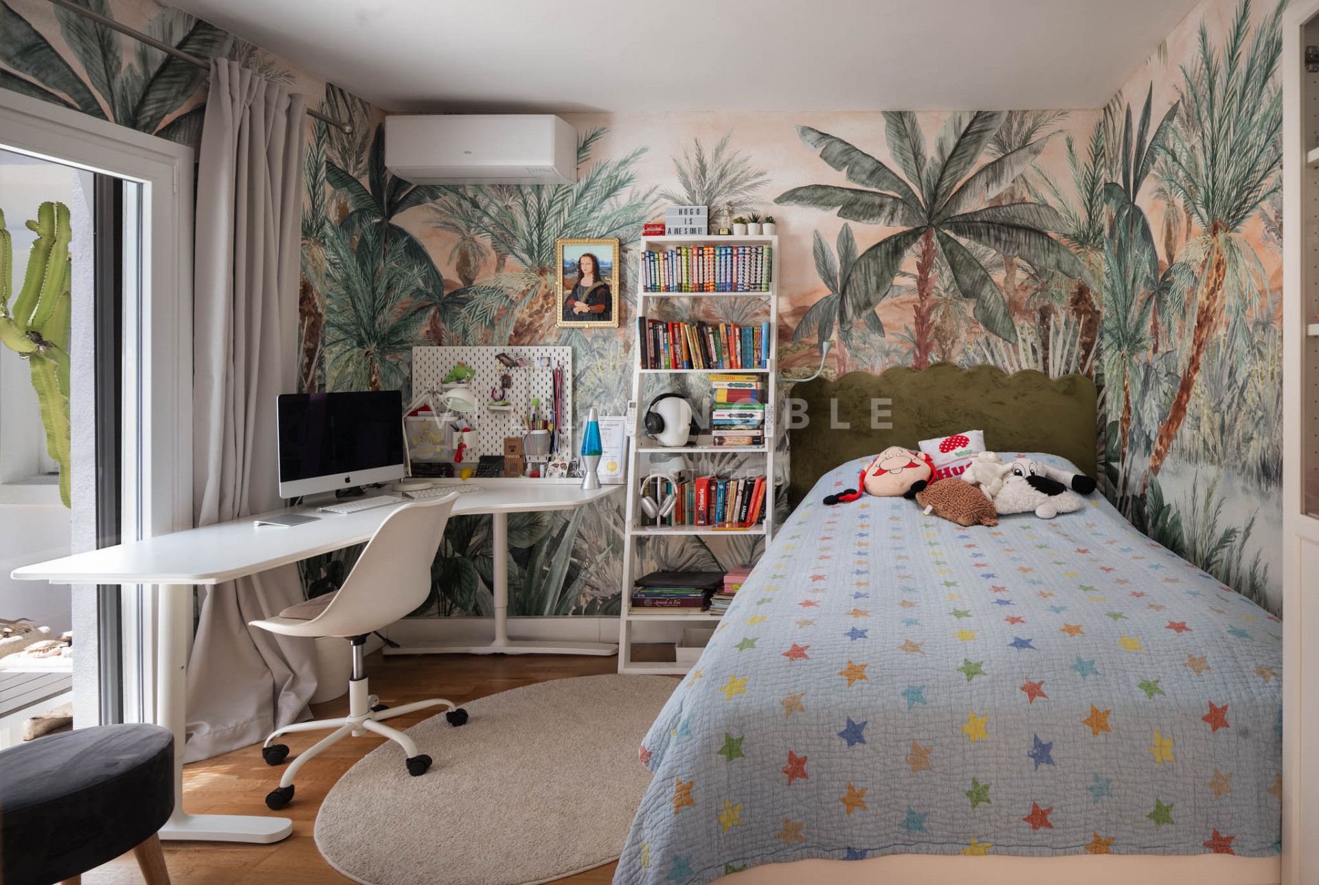 The interior layout includes three bedrooms and two bathrooms, designed to balance practicality with ease of living. The home features a fully equipped kitchen, open-plan living and dining areas with a fireplace, and a dedicated office. Large windows and multiple terraces maximize natural light and create a seamless connection between indoor and outdoor spaces. Additional elements such as fitted wardrobes and a laundry room provide everyday convenience.