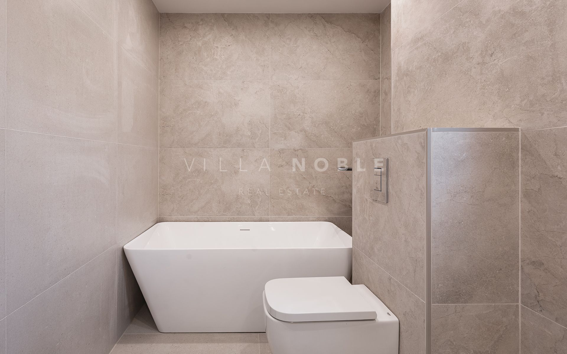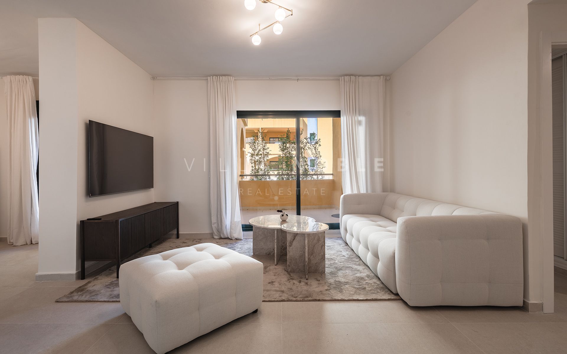 The apartment boasts a bright, open-plan layout with four spacious bedrooms, three sleek modern bathrooms, and a fully equipped kitchen fitted with premium appliances. The generous living and dining area opens onto a private terrace—perfect for morning coffee, evening cocktails, or entertaining friends and family.