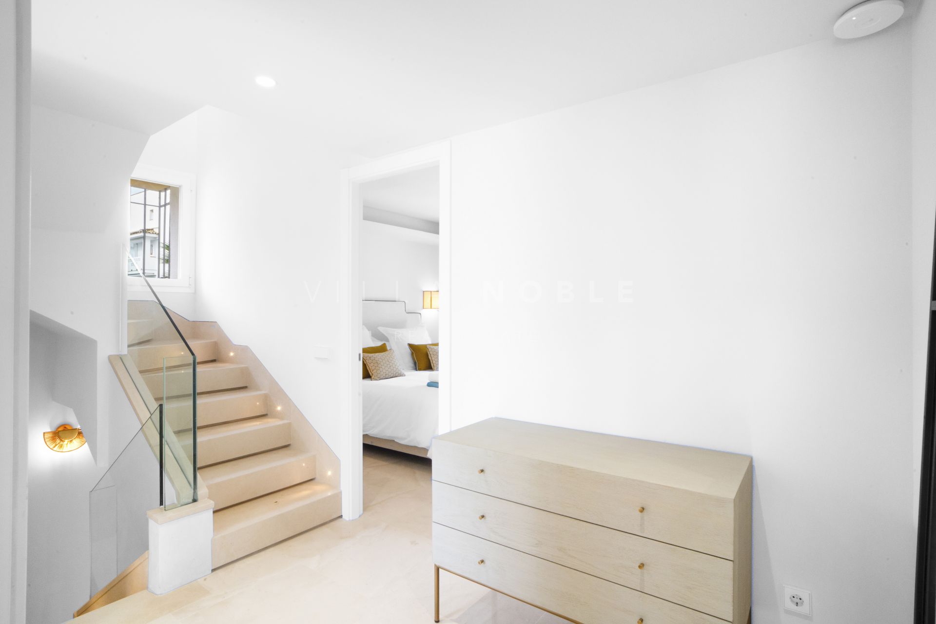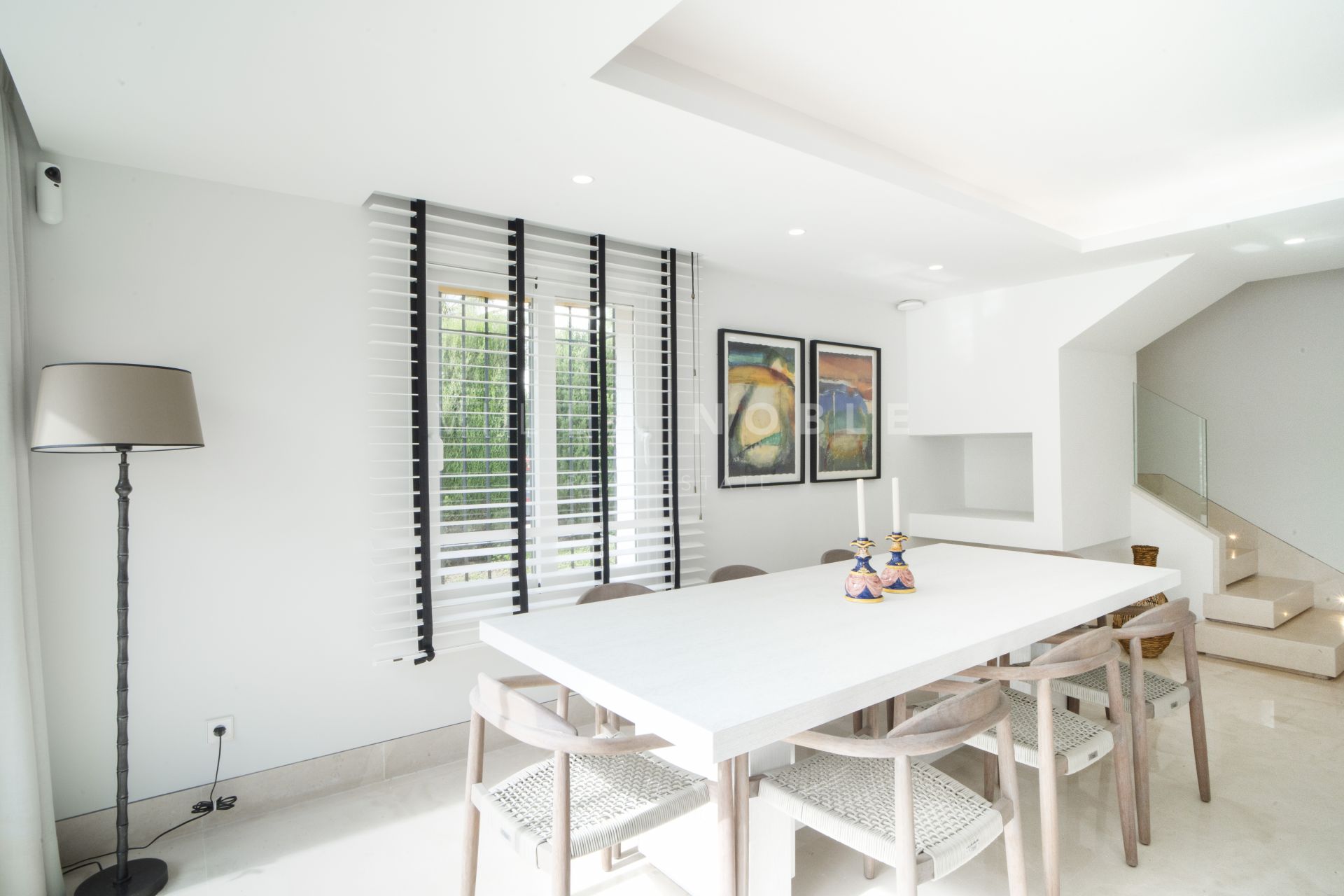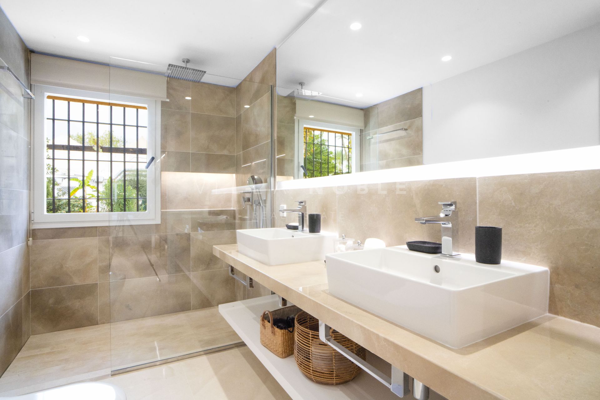 Beautifully refurbished house situated just a few meters from Marbellas ́s incredible Golden Mile beaches and surrounded by tropical gardens. This sleek, light, modern home offers an idyllic retreat in a peaceful community, nestled amongst the most popular and vibrant areas of Marbella.
