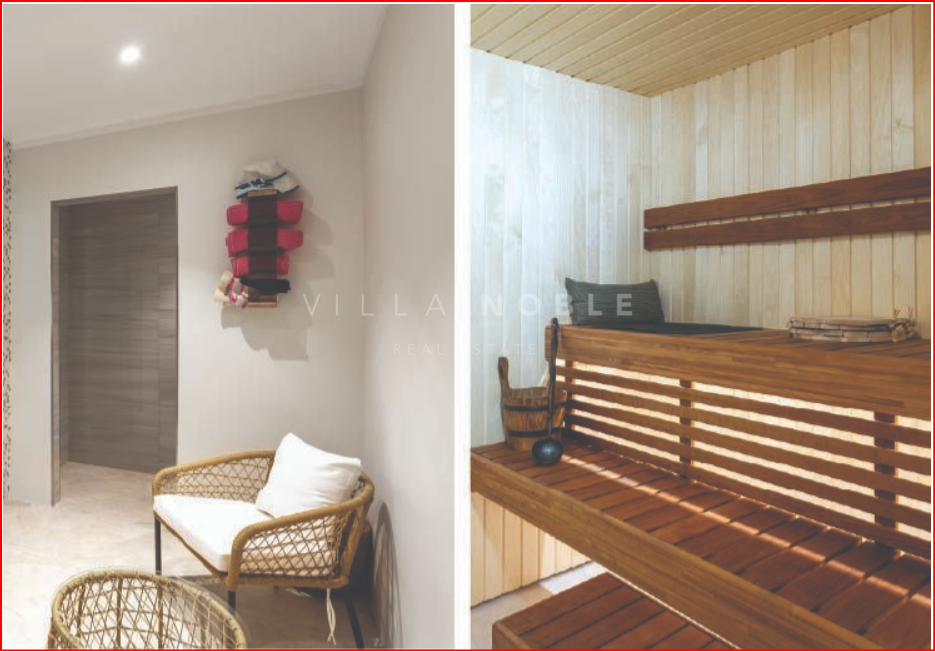 The villa is well maintained and equipped with covered terraces, fitted wardrobes, a private terrace, WiFi, sauna, games room, storage room, en-suite bathrooms, barbecue area, and a basement. It is sold fully furnished with an equipped kitchen and is located in a gated community with 24-hour security.