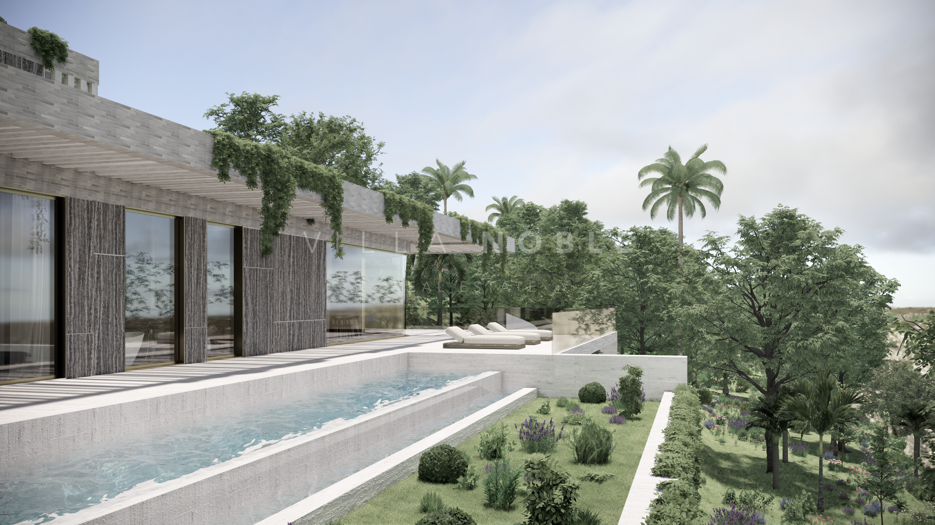 This modern luxury villa project, designed by a highly regarded Belgian architect, offers an exceptional opportunity to create your dream home in Monte Mayor, a prestigious and sought-after residential community in Benahavís. Spanning two floors plus a spacious basement, the villa is thoughtfully designed to maximize comfort, privacy, and functionality. The main floor will feature three bedrooms, two bathrooms, and a guest toilet, while the expansive basement provides the flexibility to include a gym, spa, home cinema, and even two additional bedrooms, making it adaptable to your lifestyle needs. The property also includes an impressive 26-meter-long swimming pool, perfect for enjoying outdoor living, fitness, or simply soaking in the peaceful surroundings.