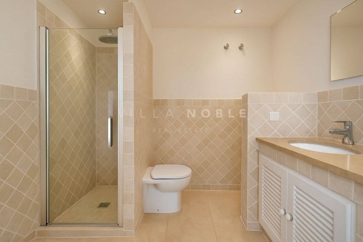 Upstairs, the master bedroom comes with an en-suite bathroom, while two further bedrooms share a modern family bathroom. All bedrooms include built-in wardrobes. The highlight is the large roof terrace with panoramic views of the hills and the Mediterranean Sea. It is perfect for entertaining, with pre-installation for a hot tub and an outdoor kitchen area.