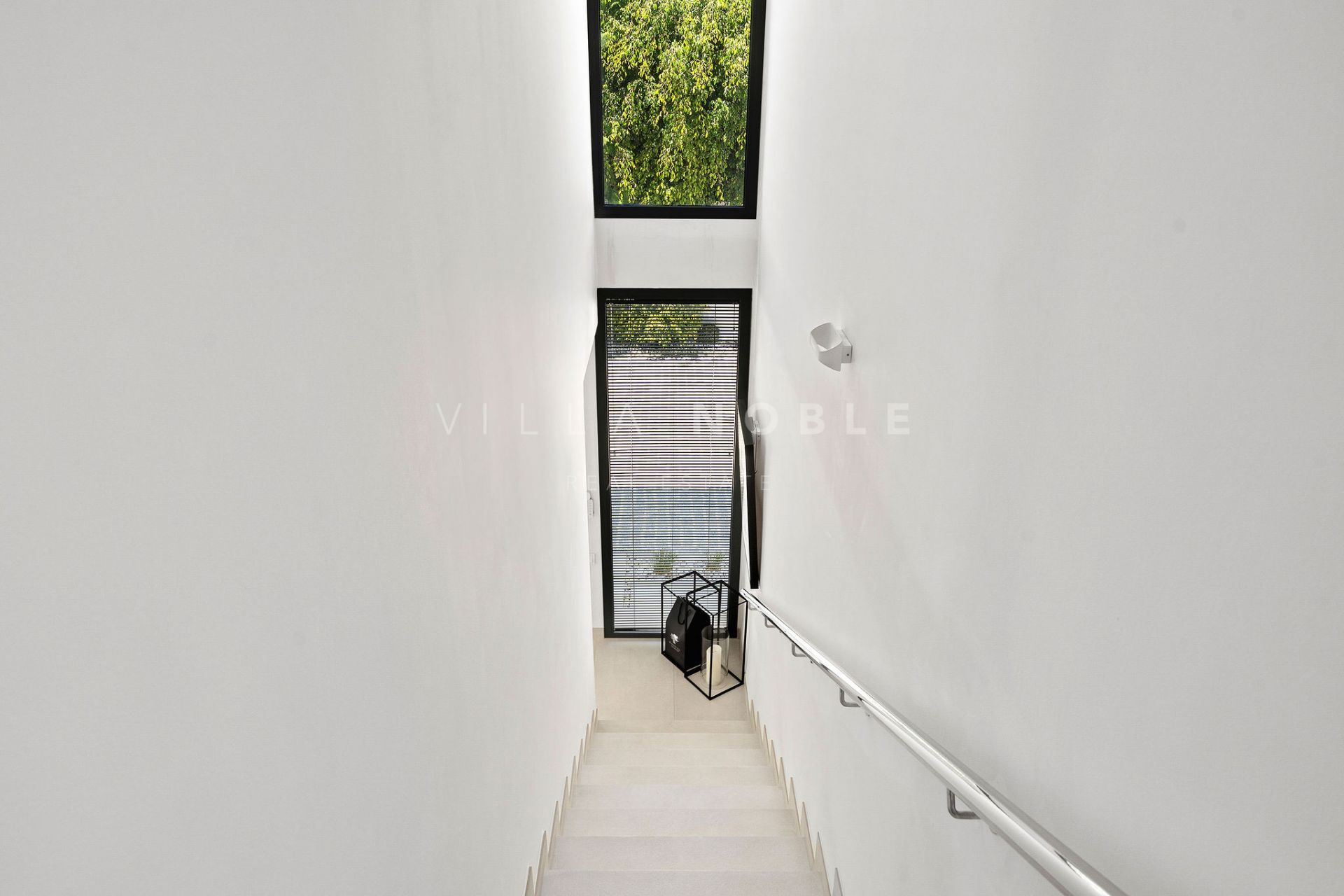 The villa encompasses 250 square meters of interior space, all thoughtfully laid out over three levels, including 93 square meter terrace that enhances outdoor enjoyment. The design effortlessly integrates functionality with elegance, from the open-plan layout on the main level to the tasteful use of materials like hardwood flooring and natural stone throughout.