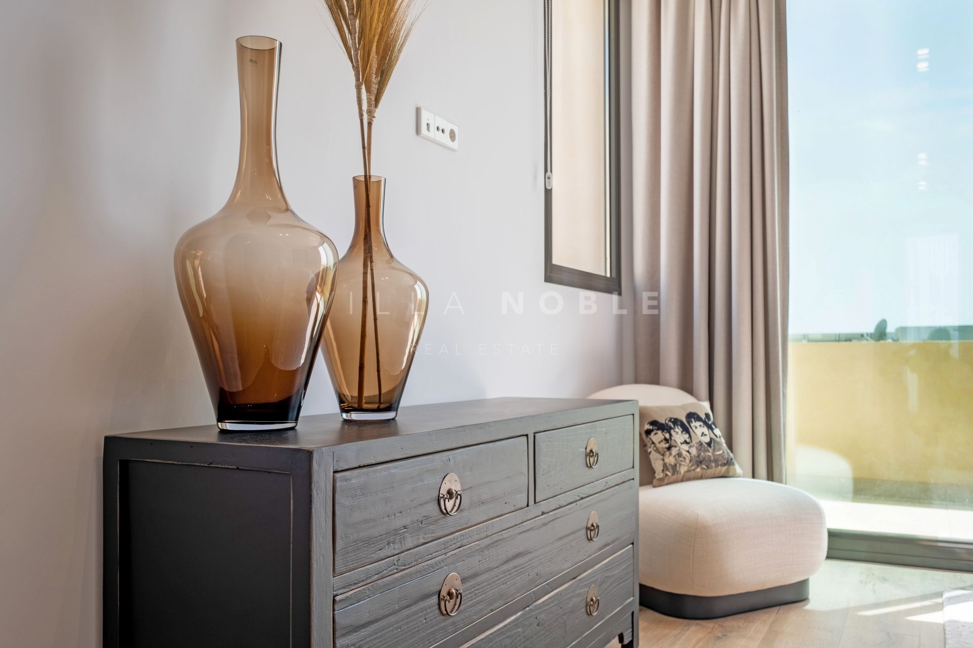 Positioned within a 10-minute drive from Puerto Banús and its pristine beaches, Paraiso Alto is a sought-after residential enclave known for its lush, green landscape and scenic views, offering a balance of exclusivity and accessibility. This villa embraces its setting with serene sea views and a feeling of privacy heightened by the area’s distinctive Ibizan-inspired architectural style. In Paraiso Alto, properties range from contemporary villas to classic Mediterranean homes, creating a cohesive yet diverse neighbourhood that appeals to those who appreciate a high-end, tranquil environment with proximity to essential amenities and leisure options.
