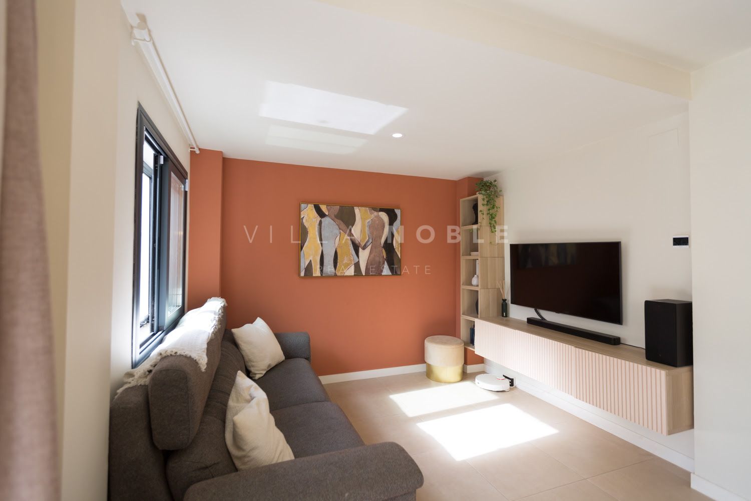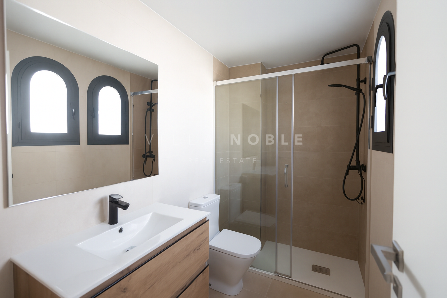 The outdoor spaces include a private garden, perfect for celebrations, games or moments of tranquility, and a front terrace to the living room that extends the living area and allows you to enjoy the outdoors. On the upper floor, the sun terrace with pergola becomes an exclusive place to relax and enjoy open views.