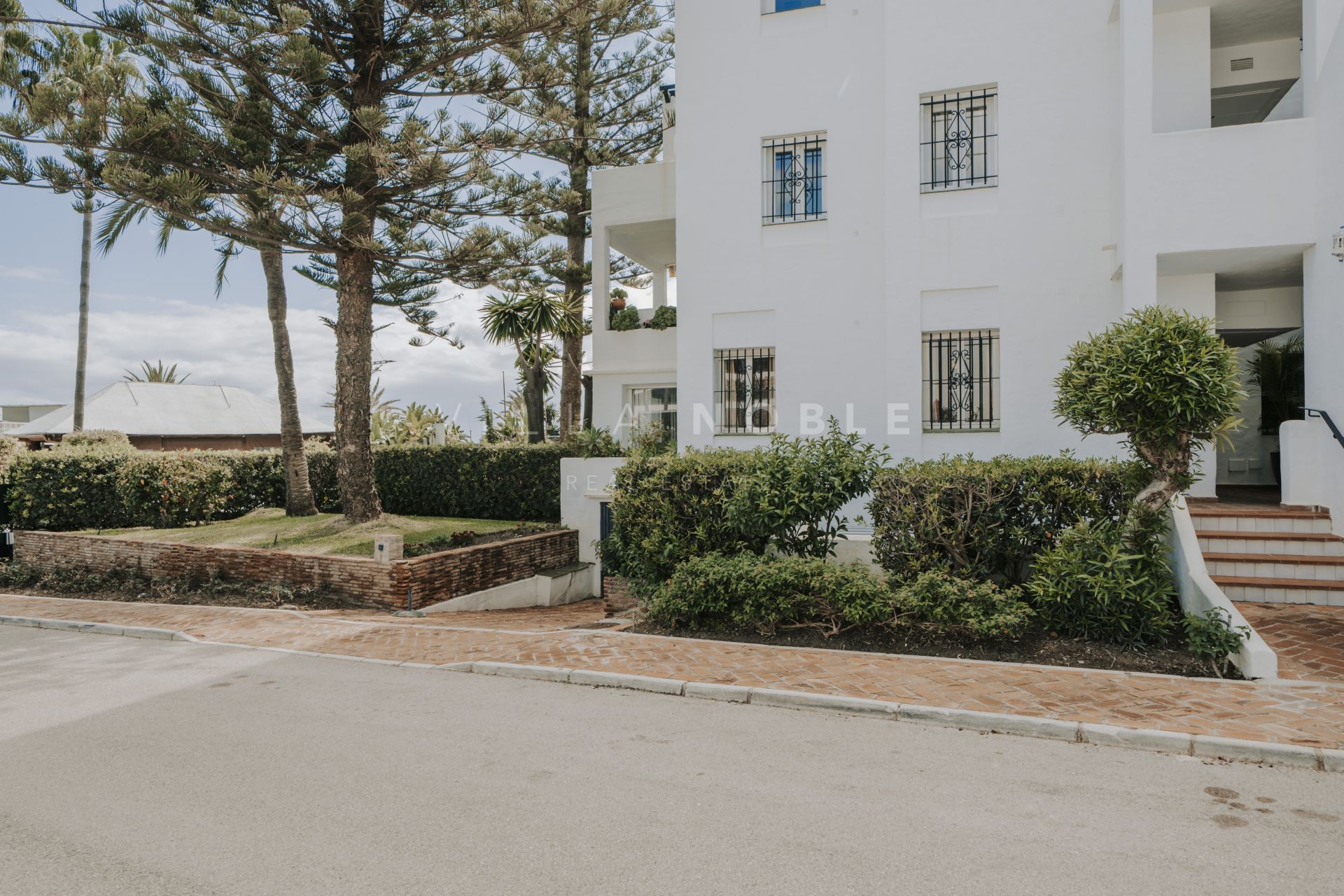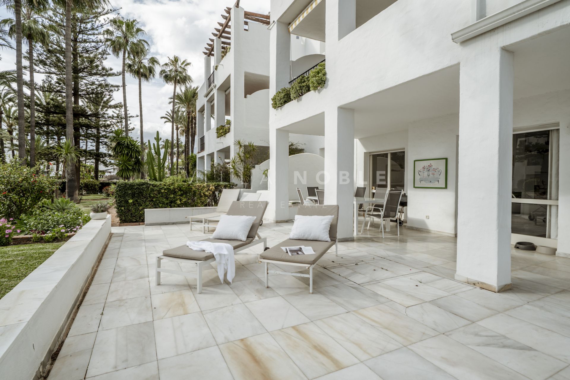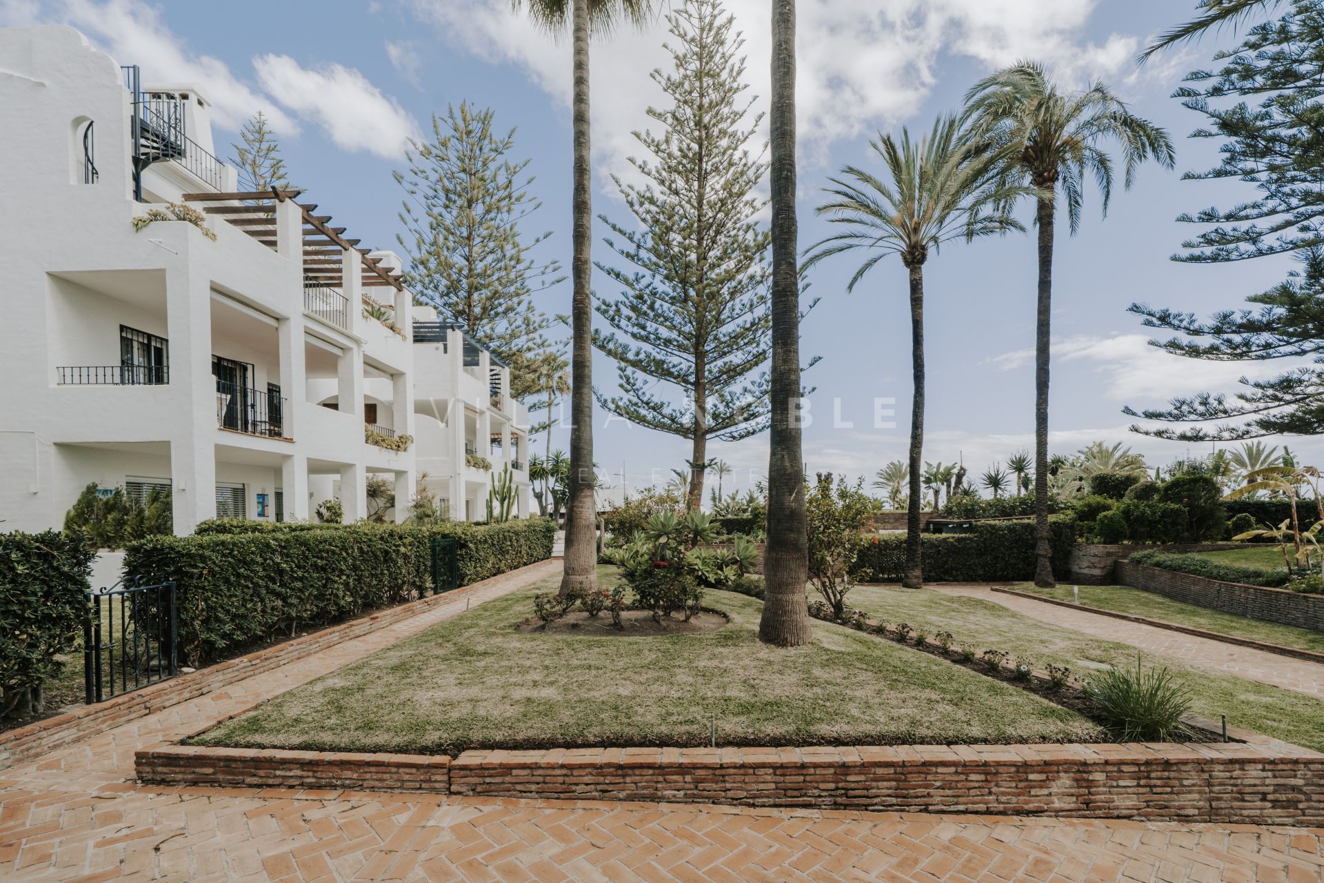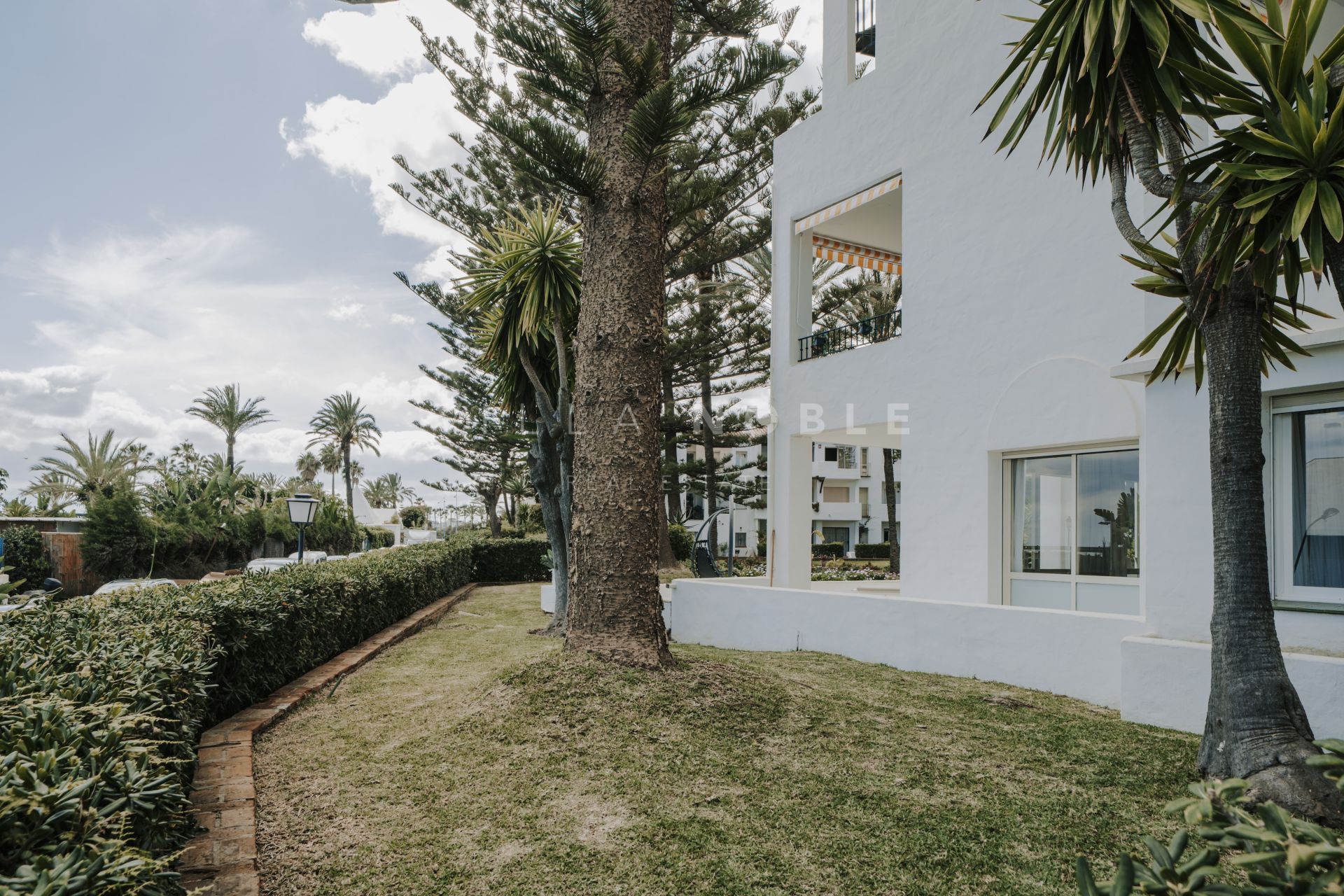 Stunning 3-bedroom, 2-bathroom corner apartment, just steps from the pristine sands and boardwalk of San Pedro Playa / Beach. Positioned on the ground floor, this spacious residence offers direct beach access and is nestled among lush, mature gardens with elegant palm trees and pines, creating a serene retreat in a coveted location with your own private garage. Features a tourist rental license and turn key rental income also.