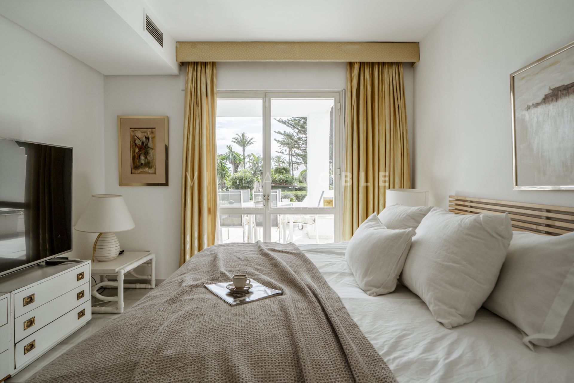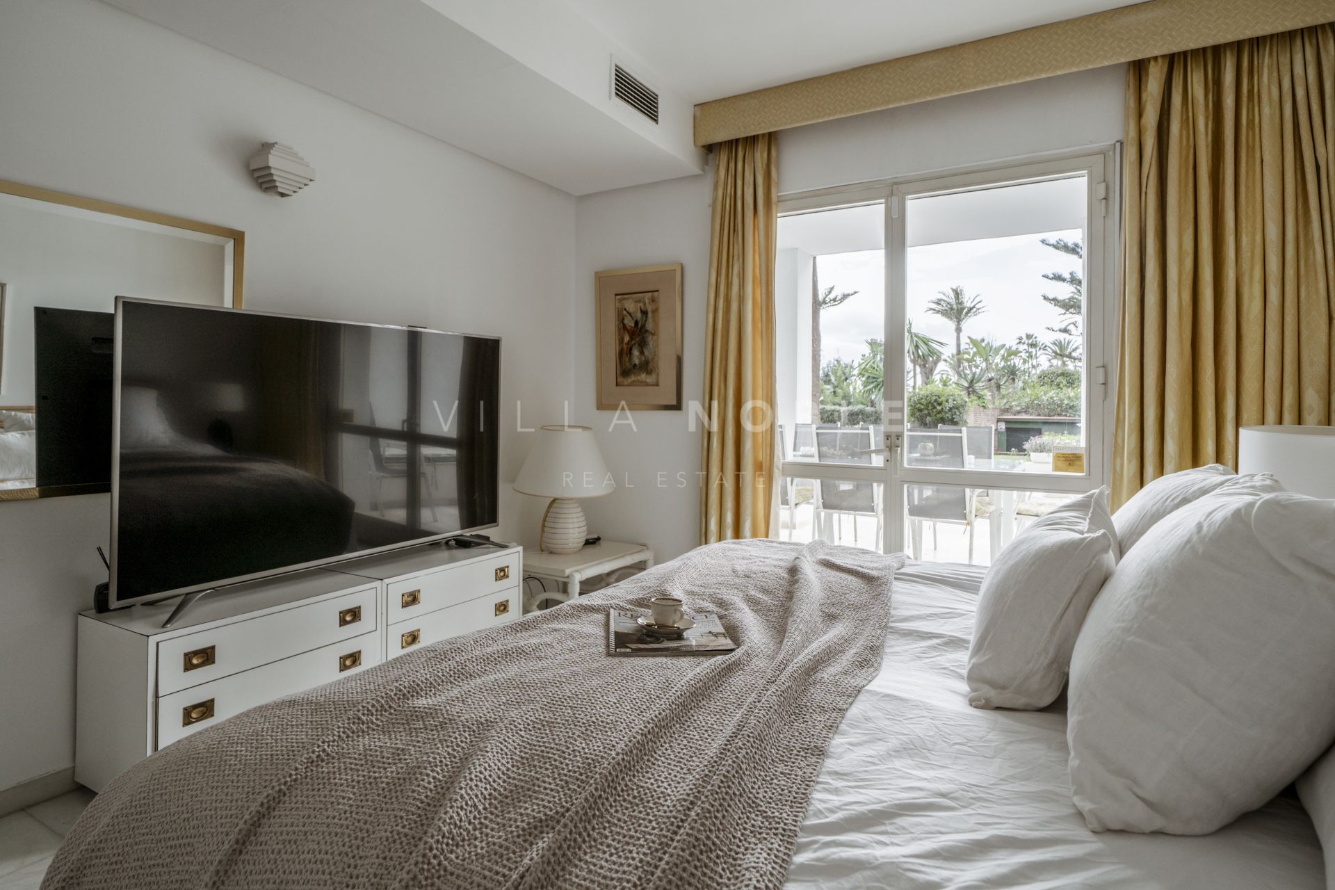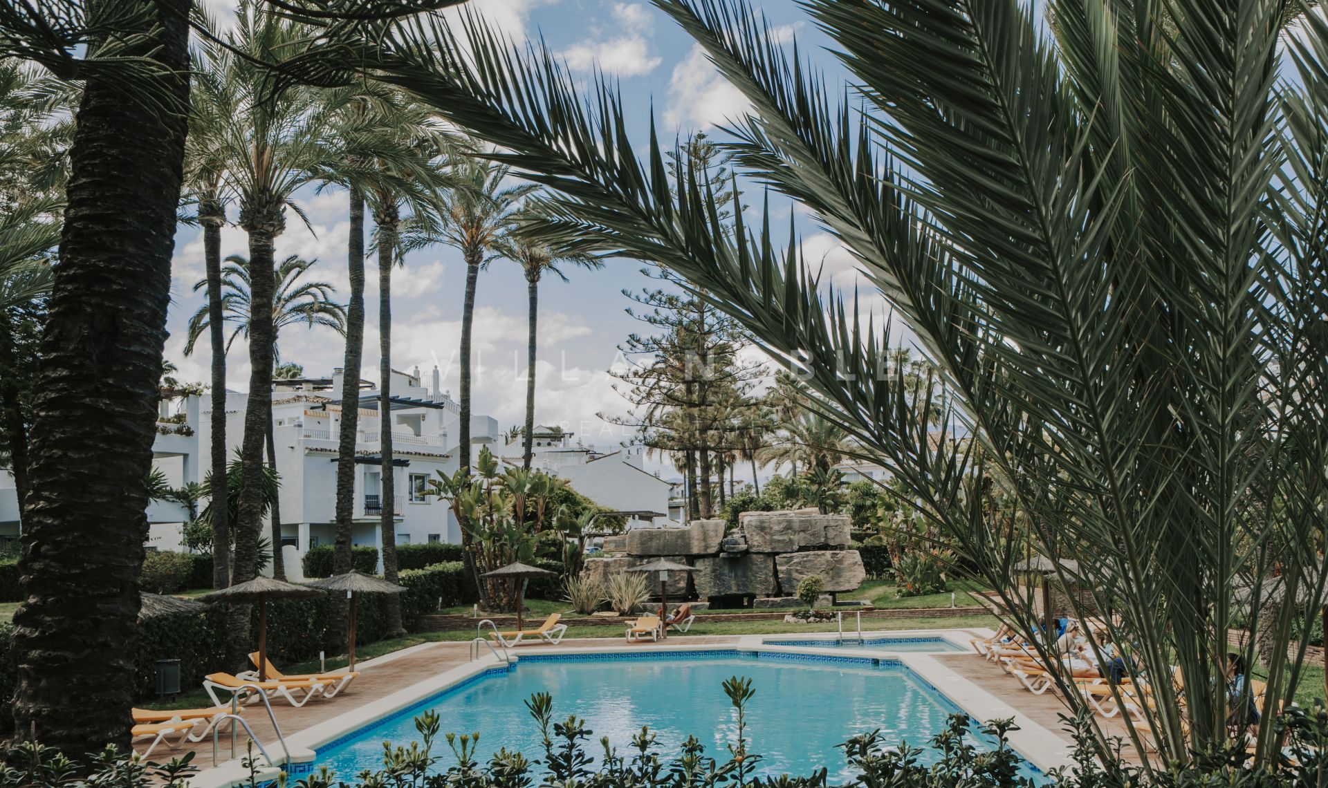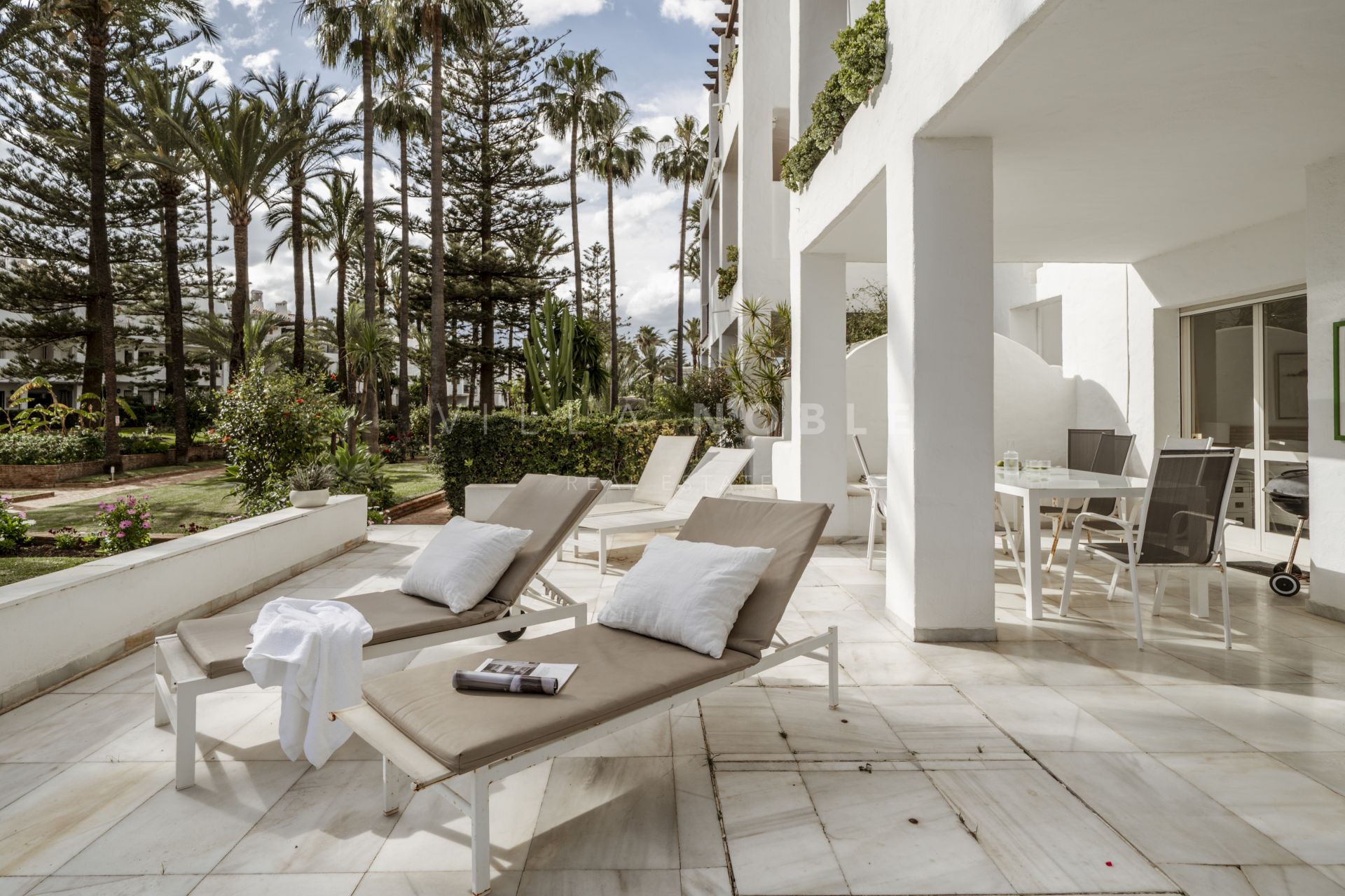 Stunning 3-bedroom, 2-bathroom corner apartment, just steps from the pristine sands and boardwalk of San Pedro Playa / Beach. Positioned on the ground floor, this spacious residence offers direct beach access and is nestled among lush, mature gardens with elegant palm trees and pines, creating a serene retreat in a coveted location with your own private garage. Features a tourist rental license and turn key rental income also.