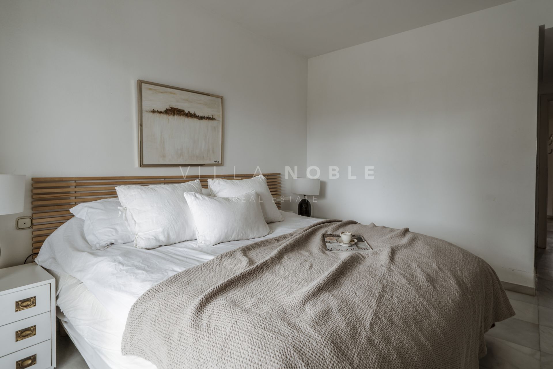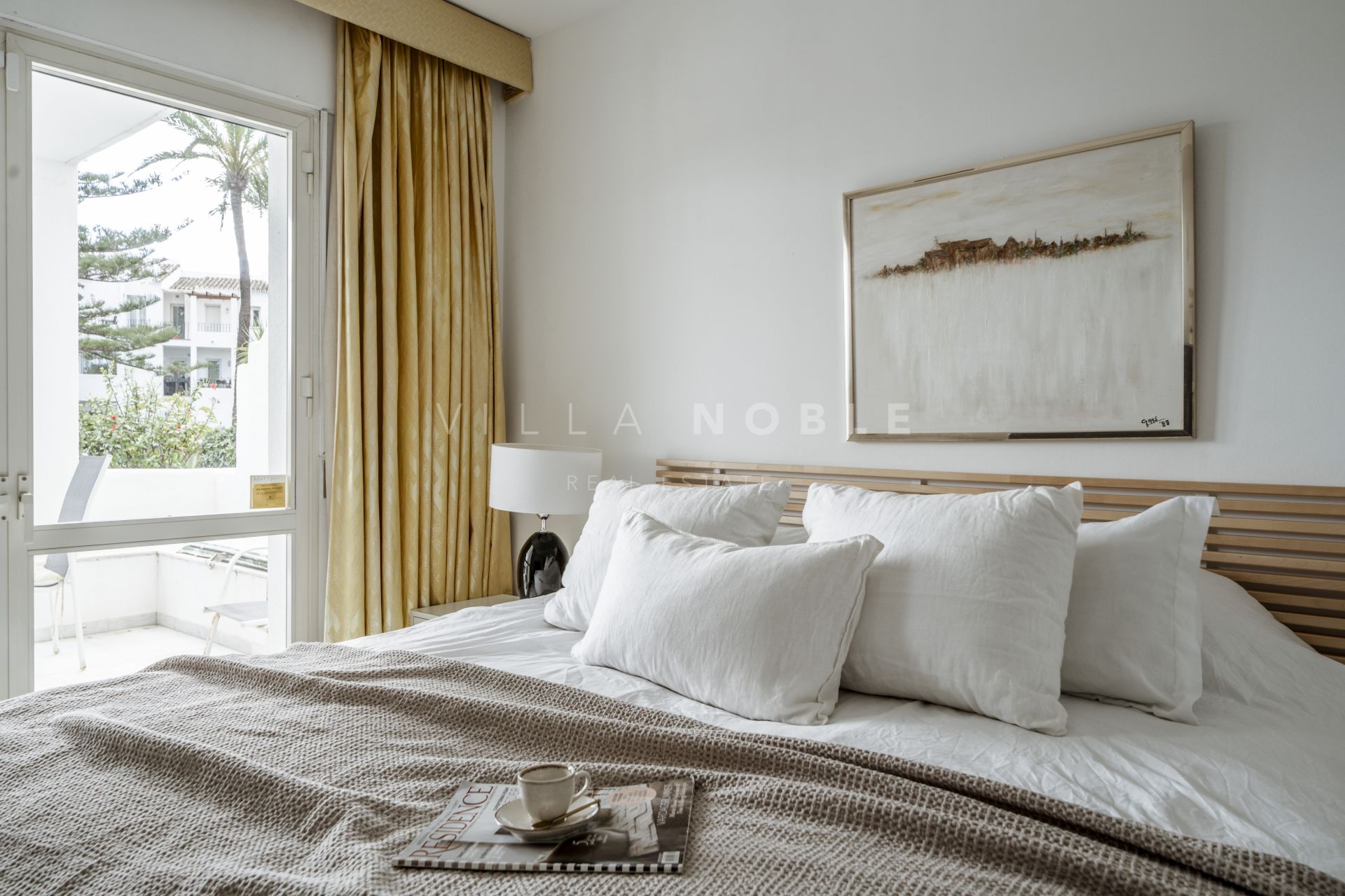The master suite serves as a private sanctuary, complete with an en-suite bathroom, walk-in closet, and direct access to the terrace and garden, providing an intimate escape.