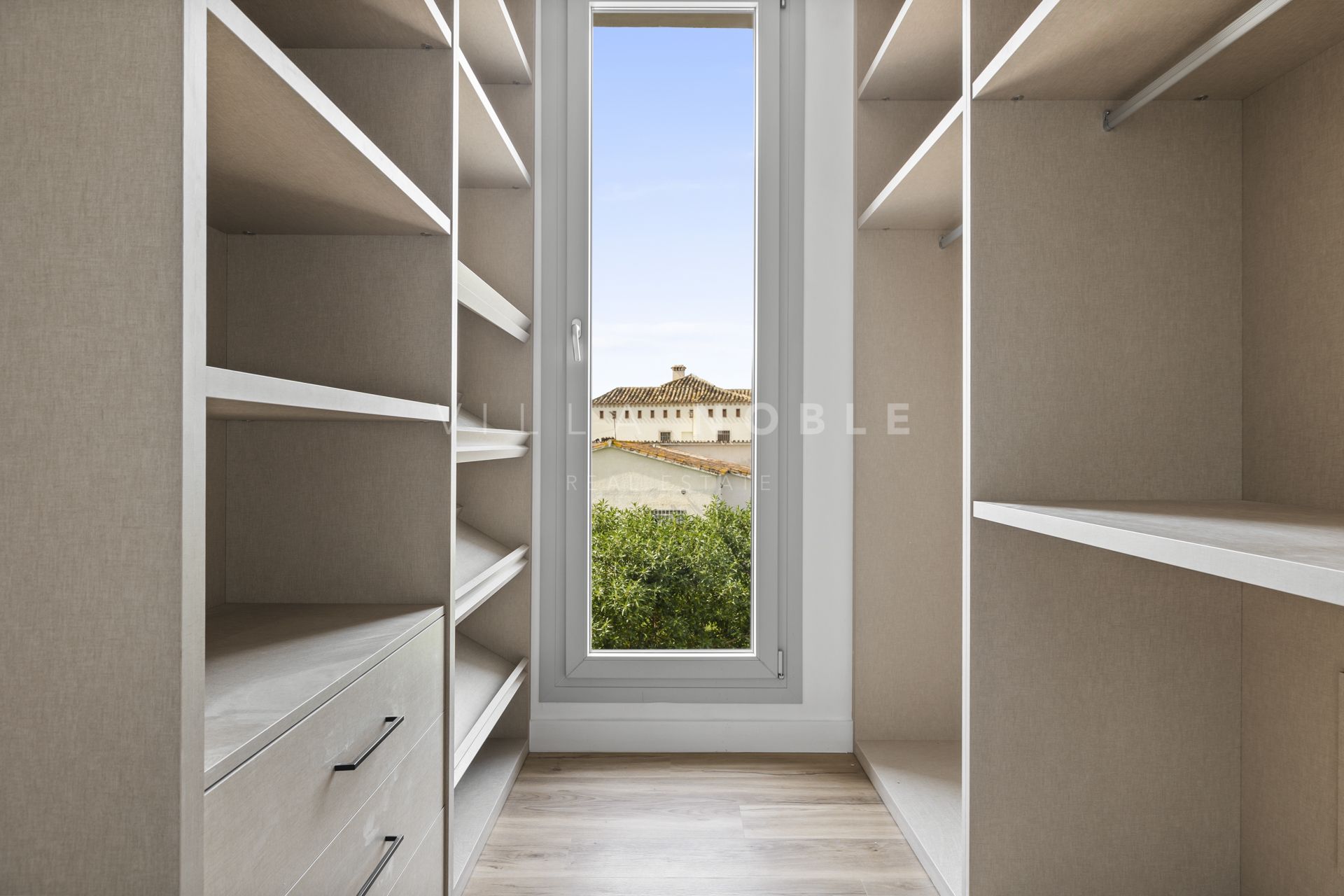 First floor: Master bedroom en suite with dressing area and one guest bedroom en suite. Private terraces.
