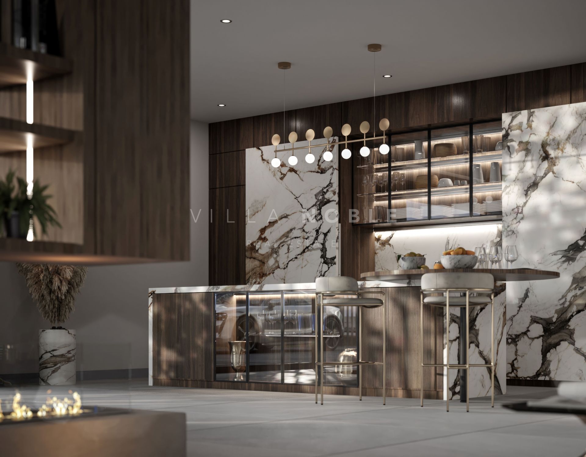 Spread over three floors, the villas have approximately 450 m² of floor space, offering five bedrooms, five full bathrooms and an open-plan design that maximises natural light. Floor-to-ceiling windows seamlessly connect the interior with the terraces, creating an environment where the landscape takes centre stage. The kitchens, fully equipped with high-end appliances, reflect the union between design and functionality. The meticulously selected finishes convey sophistication, and the possibility of customising every detail guarantees a unique home adapted to the lifestyle of its owners.