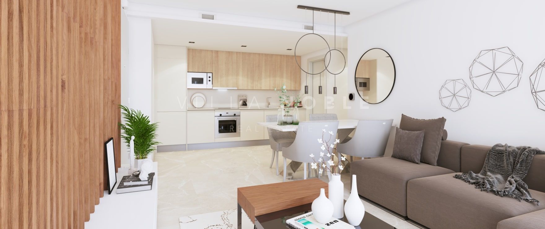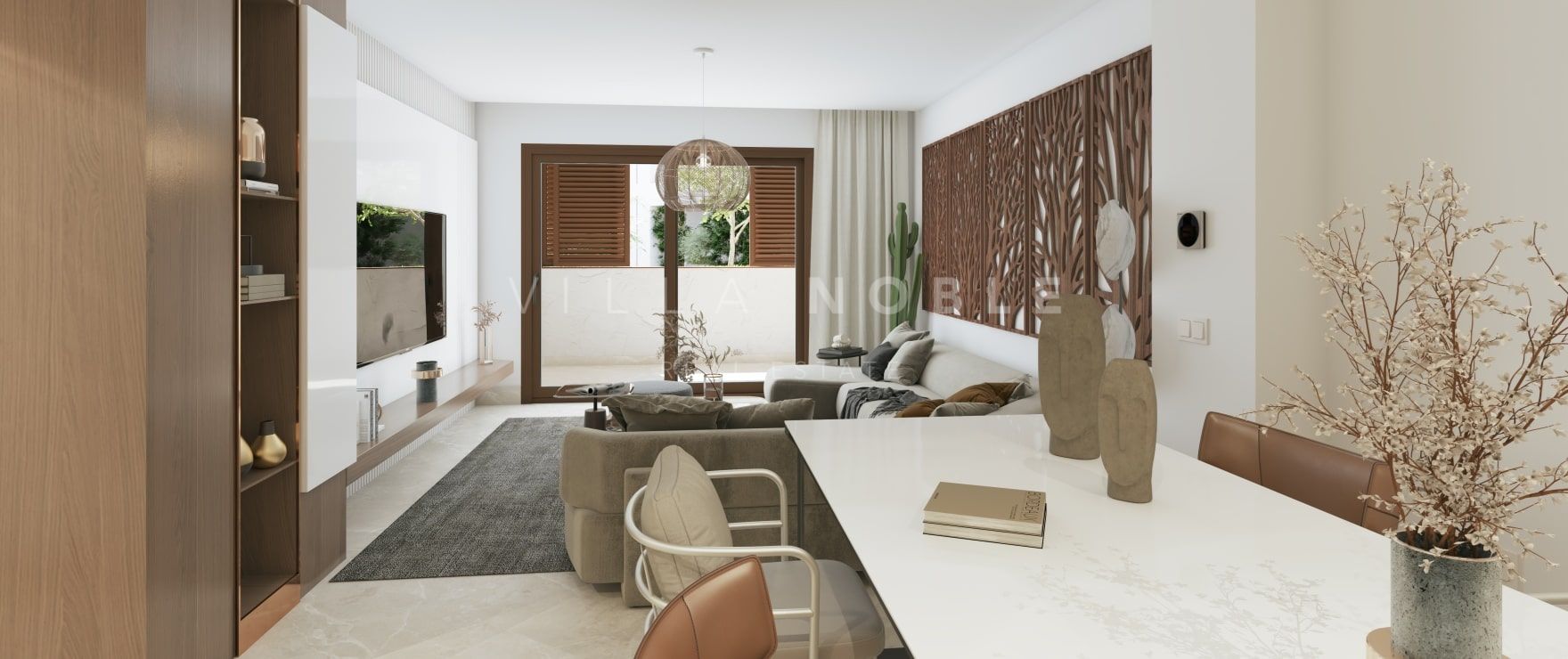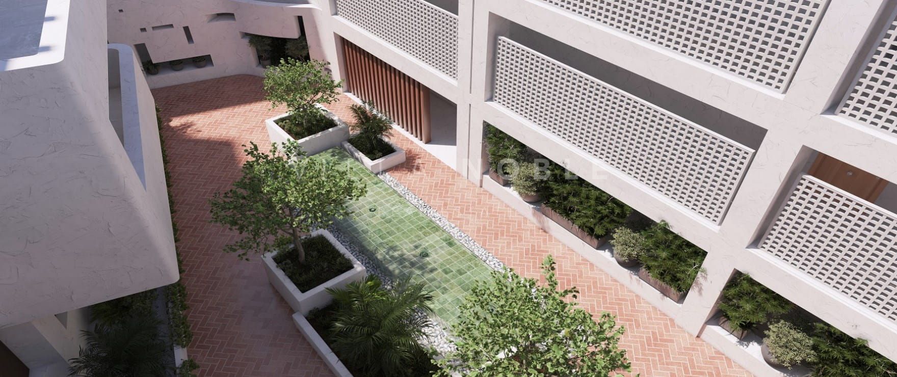 Apartamento en venta en Benahavis Centro, Benahavis con 1 dormitorio, 1 baño, construido en 2027 y tiene piscina (comunitario), garaje (privado) y jardín (comunitario). Dimensiones: 58.96m² construidos, 58.96m² interior y 35.3m² terraza.
