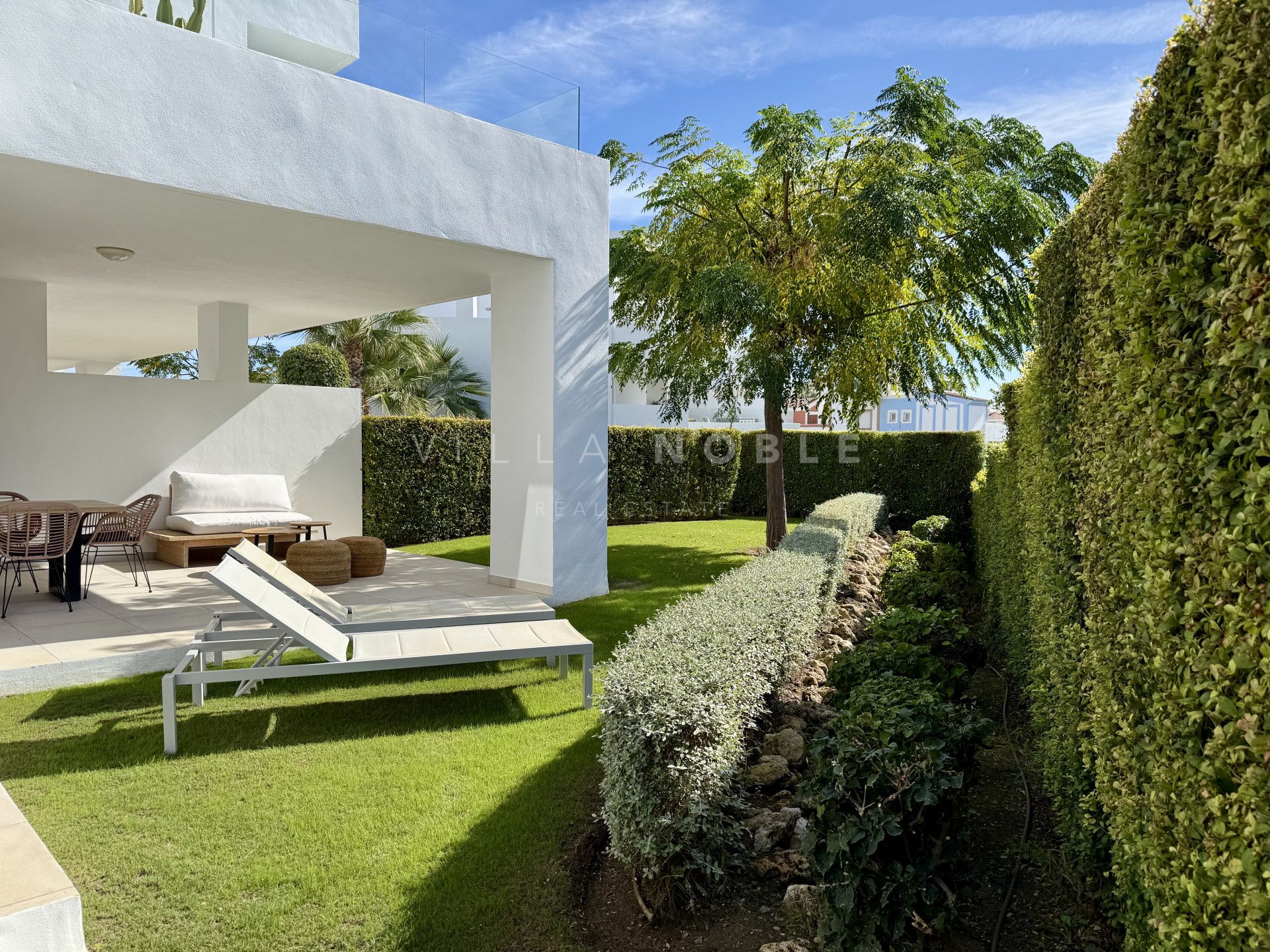 Lujoso y espacioso apartamento con jardín privado en Cortijo del Golf, Estepona Este
