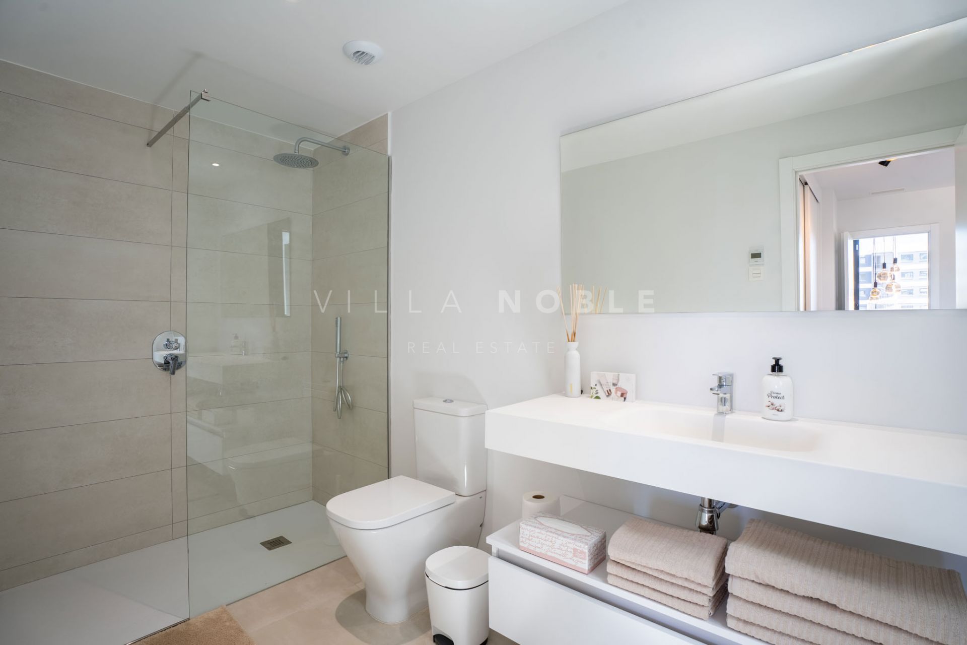 El apartamento ofrece 147 m² de superficie habitable, distribuidos en dos dormitorios, dos baños y un aseo de invitados. La suite principal cuenta con armarios empotrados y baño en suite con acabados de alta calidad. Un segundo dormitorio y un baño completo independiente garantizan la máxima flexibilidad para invitados o familiares.