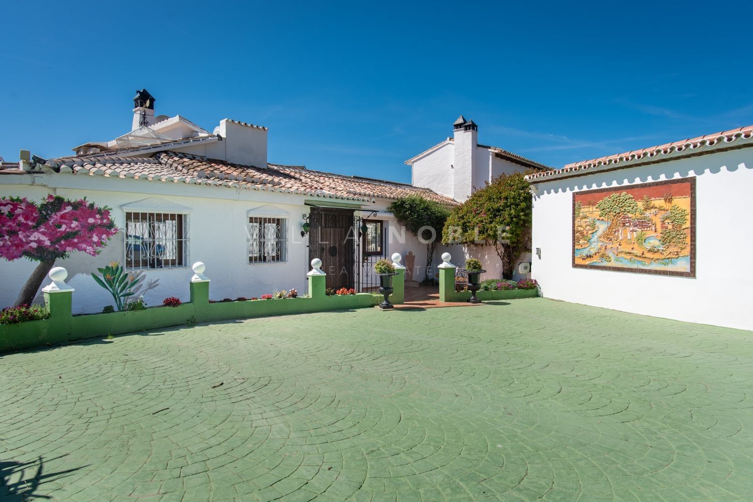 A solo 2 km del vibrante centro de Estepona y a 4 minutos en coche de la playa, esta hermosa villa de estilo mediterráneo ofrece la combinación perfecta de paz, privacidad y comodidad.