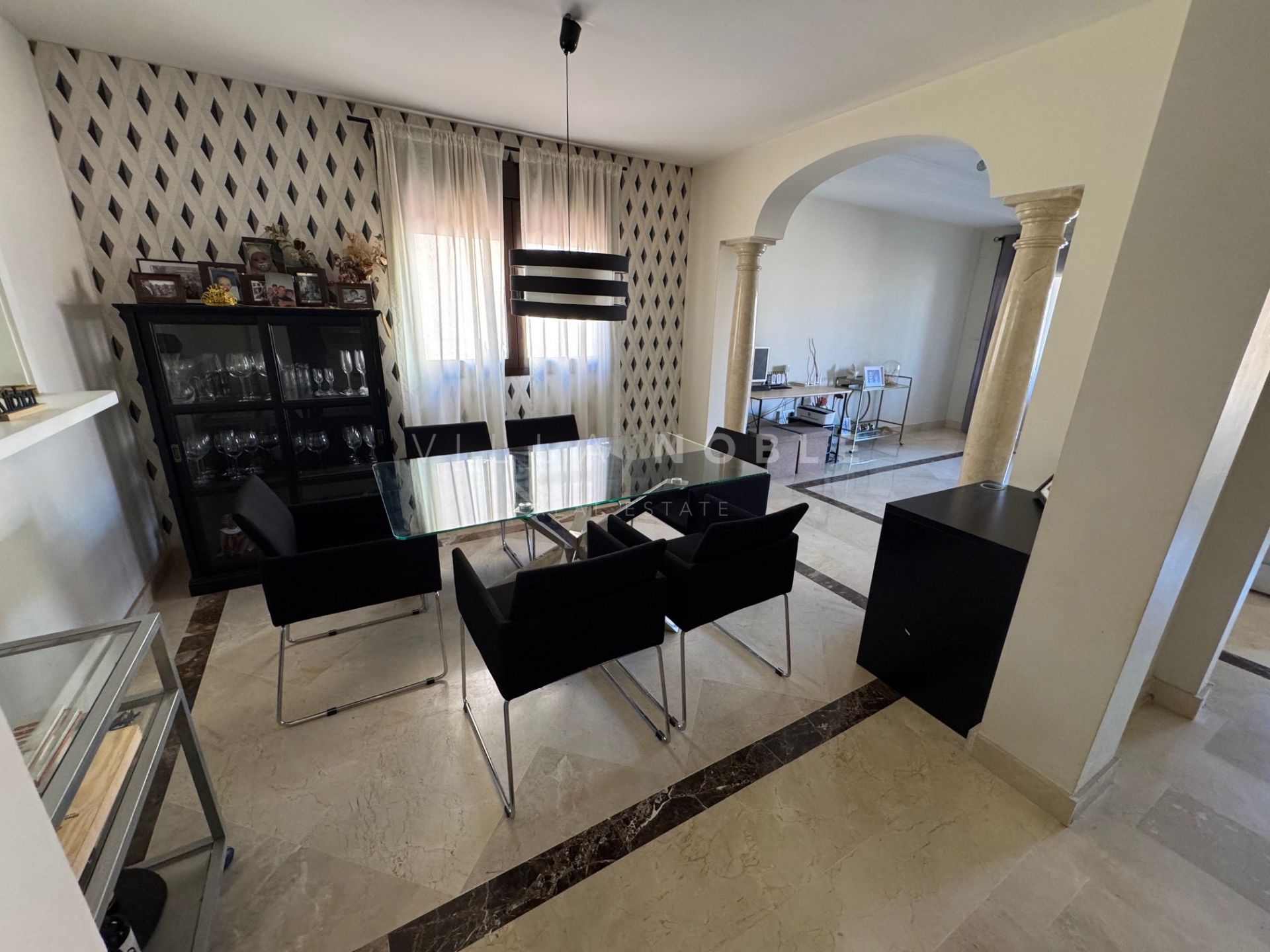 Ubicada en la zona residencial de Las Villas de Santa María, al oeste de Estepona, esta espaciosa y acogedora casa adosada en esquina de cuatro dormitorios ofrece comodidad, privacidad y una excelente ubicación cerca del nuevo hospital, un colegio internacional y Azata Golf. La playa, el puerto de Estepona, tiendas, restaurantes y todos los servicios están a solo cinco o diez minutos.