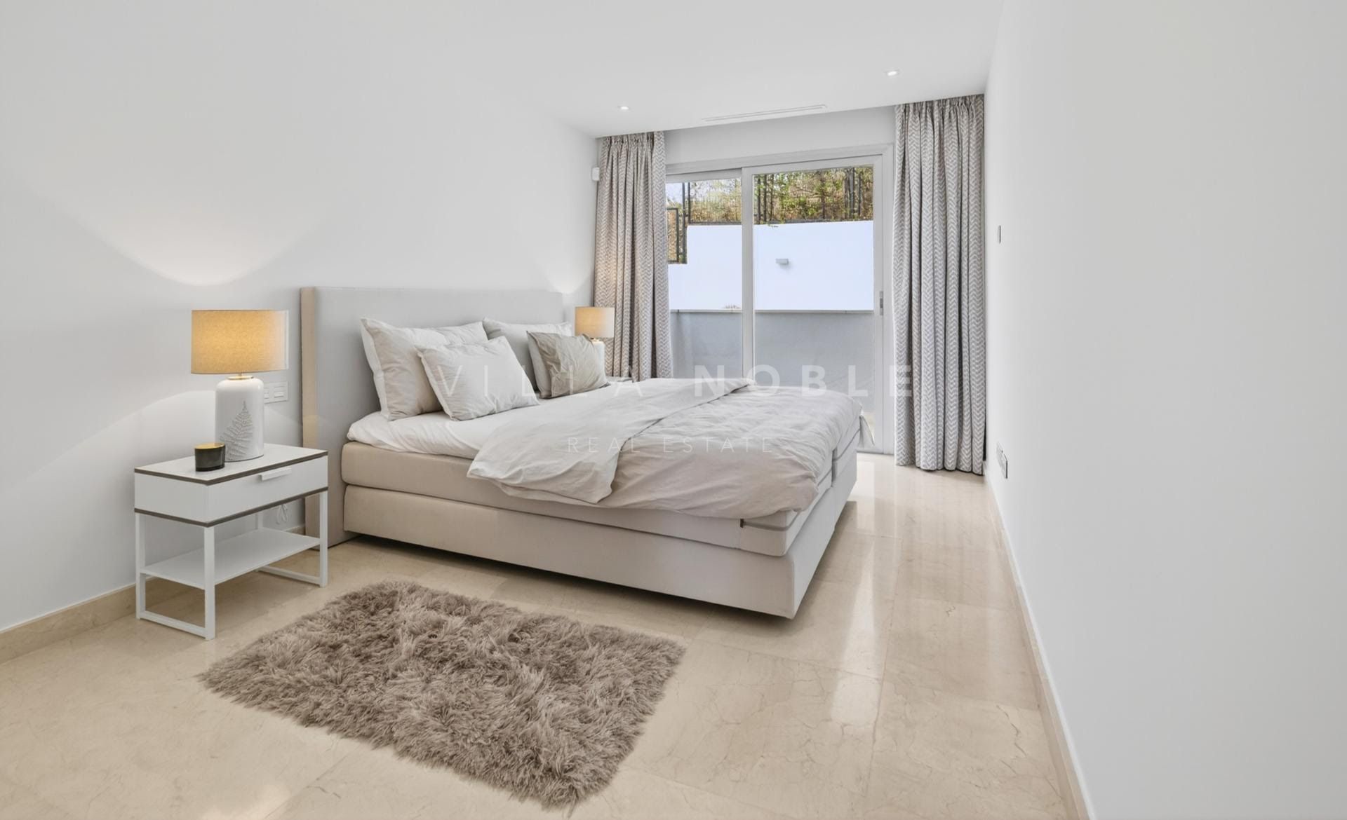 Descubra un precioso apartamento de dos dormitorios en la exclusiva urbanización boutique de La Morelia de Marbella. Ubicado en una parcela elevada en la codiciada zona de Nueva Andalucía, esta vivienda contemporánea combina un diseño vanguardista con acabados de alta calidad.