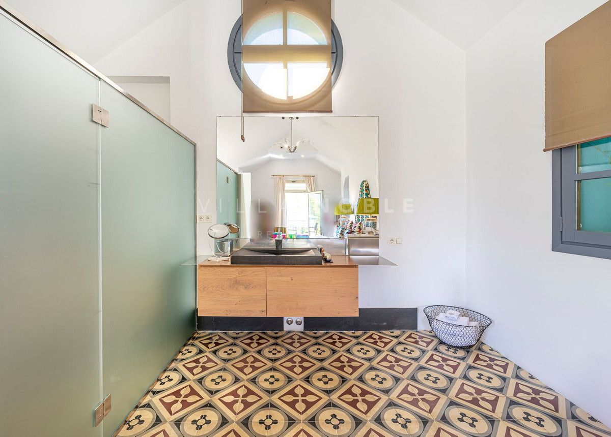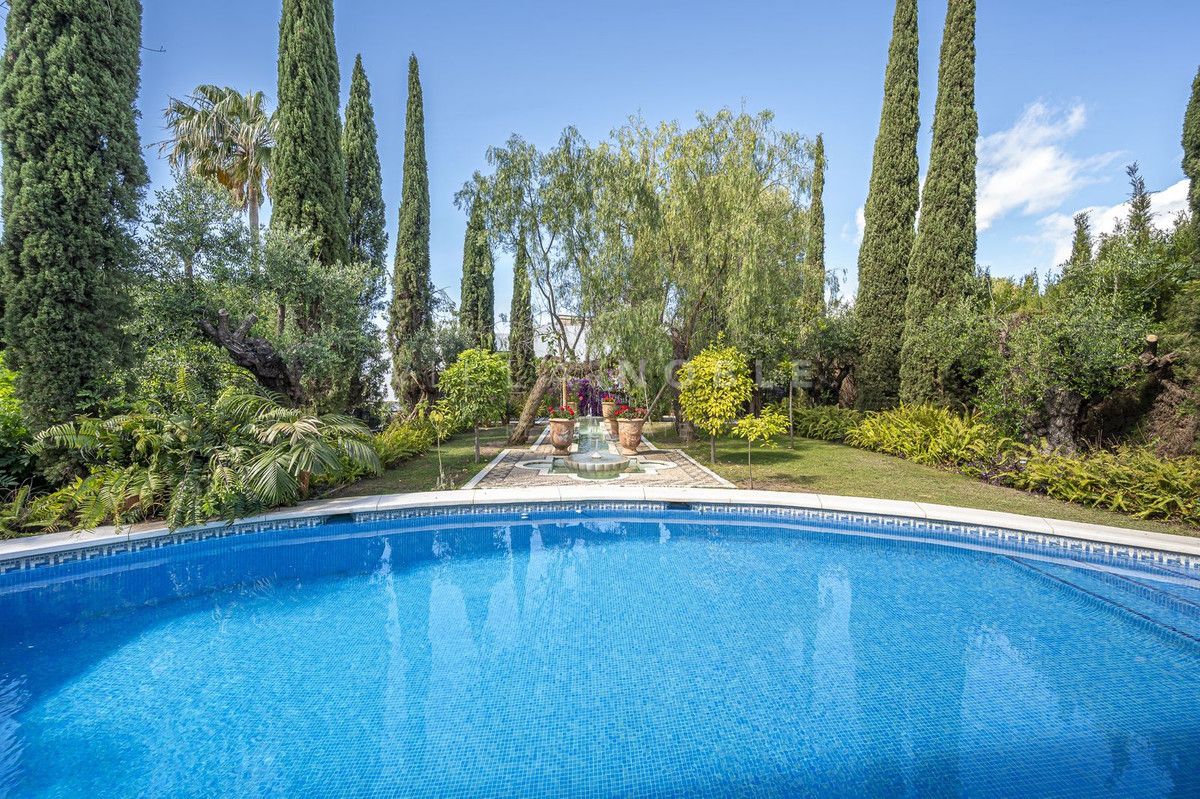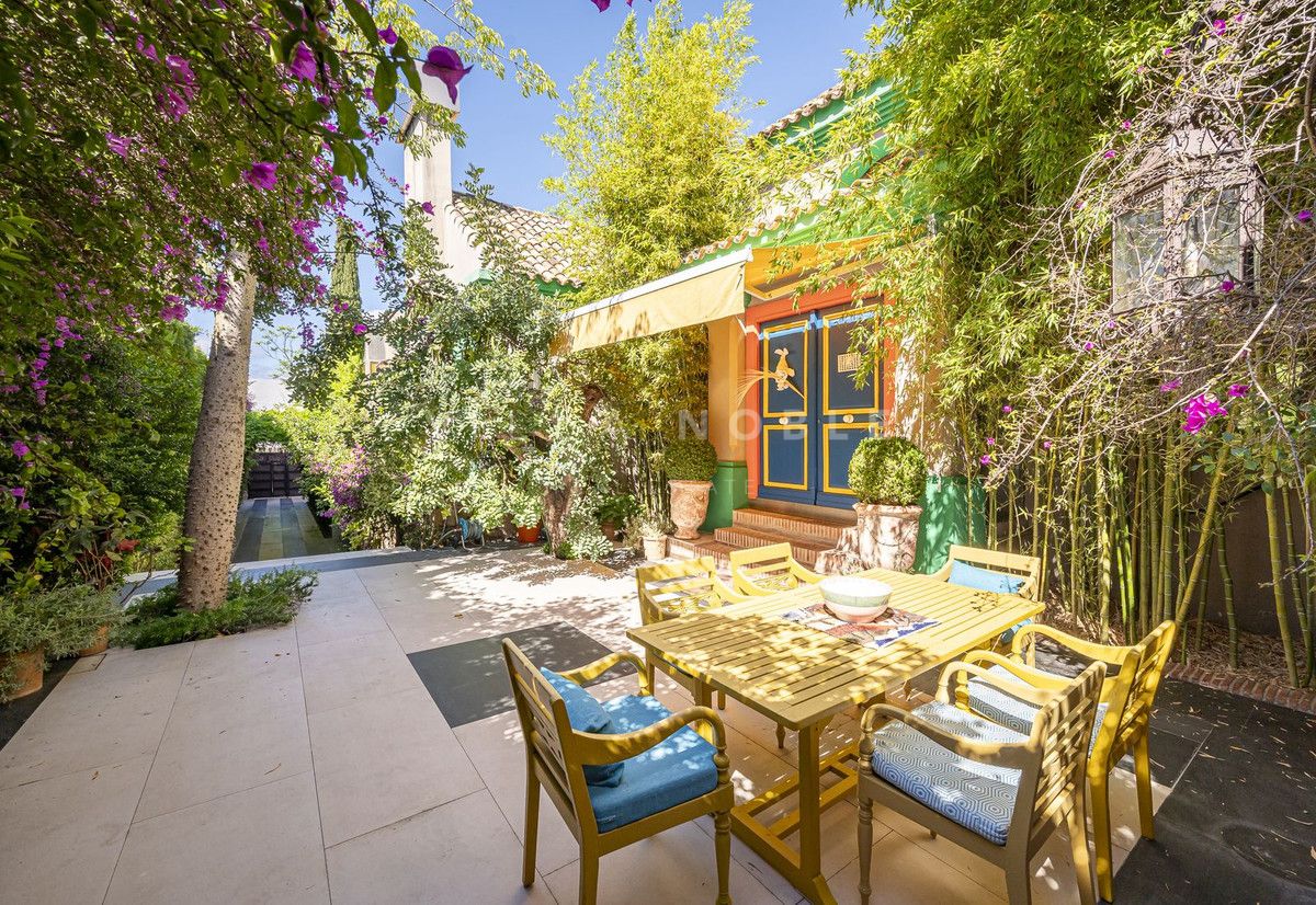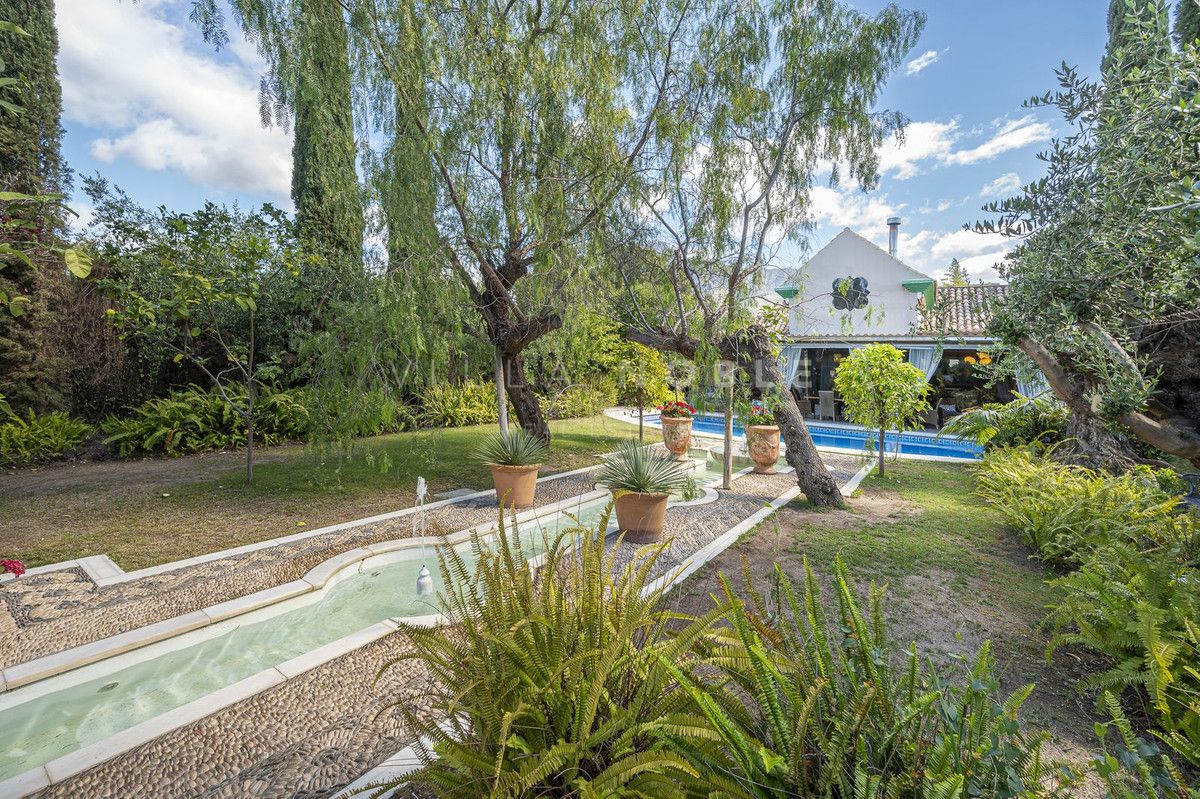 La vivienda, de 587 m², se asienta sobre una parcela de 1018 m² con piscina privada, hermosos jardines, árboles maduros y fuentes andaluzas.