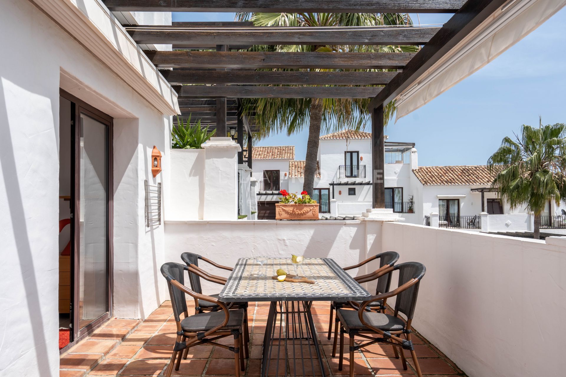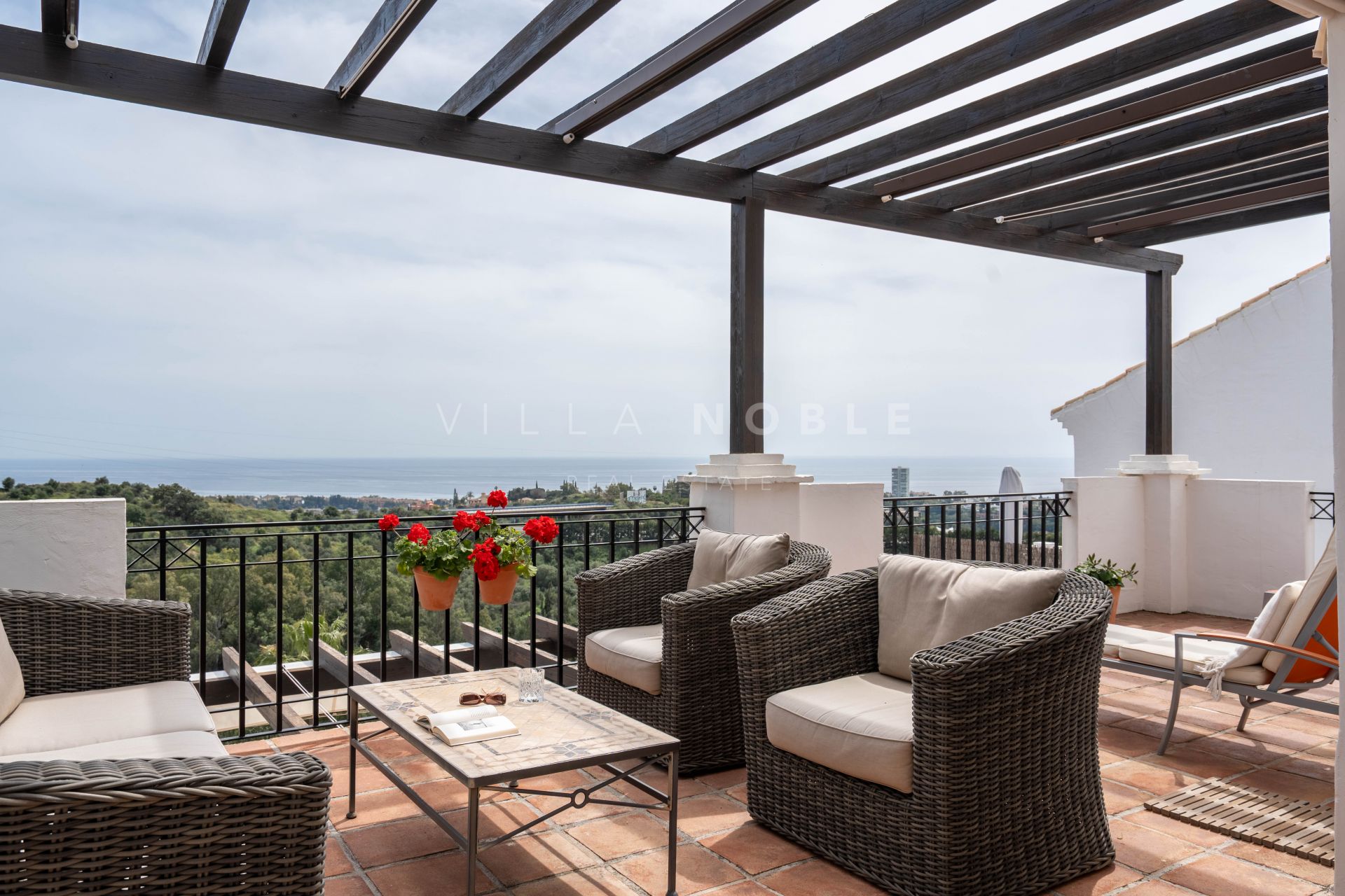 Ático dúplex de estilo tradicional andaluz con vistas panorámicas al mar en Altos de los Monteros, Marbella