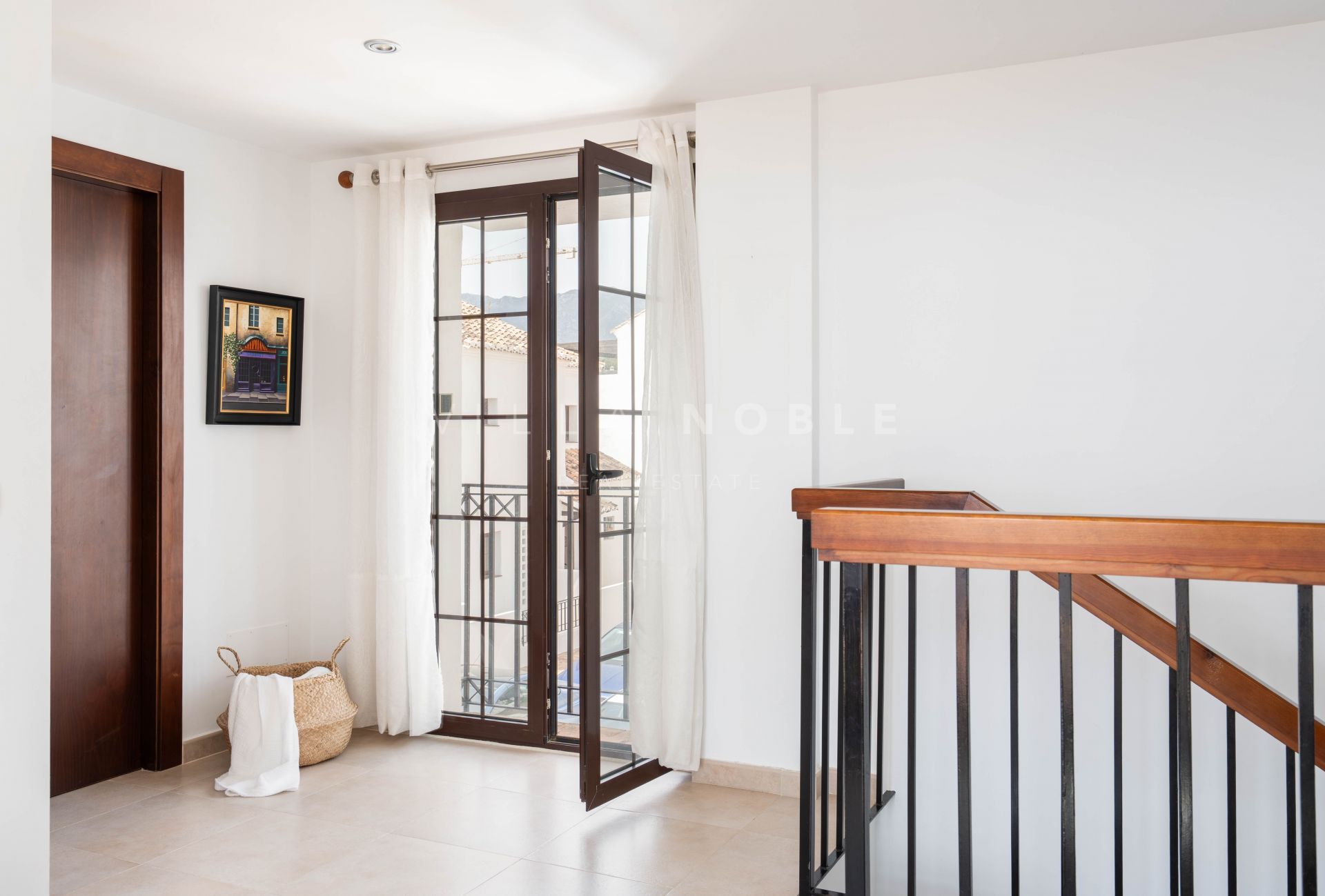 Ubicada en una urbanización cerrada y segura con arquitectura tradicional andaluza, la residencia ofrece un ambiente tranquilo y auténtico. Los residentes tienen acceso a jardines bellamente cuidados, una gran piscina comunitaria y un tranquilo entorno natural que convierte la vida diaria en un auténtico remanso de paz.