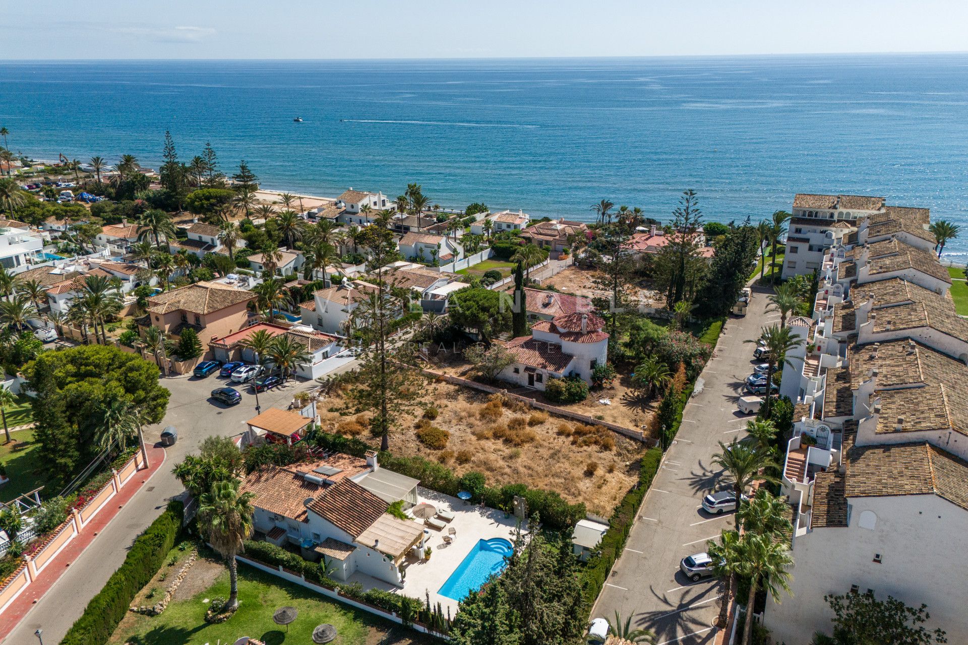 Una oportunidad única para adquirir una parcela estratégicamente ubicada de 872 m² con proyecto de villa con licencia completa, a pocos pasos del mar Mediterráneo en Marbesa, una de las comunidades costeras más consolidadas de Marbella Este.