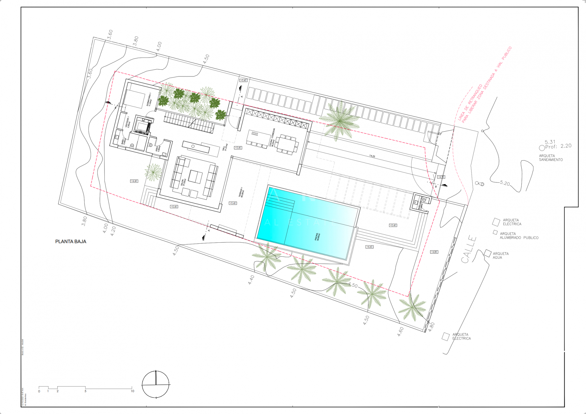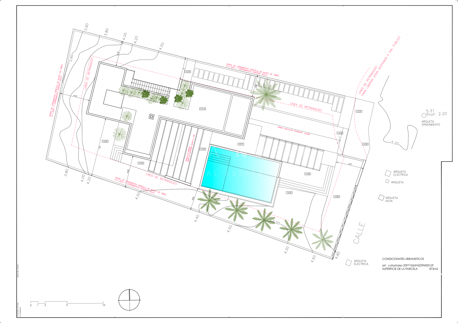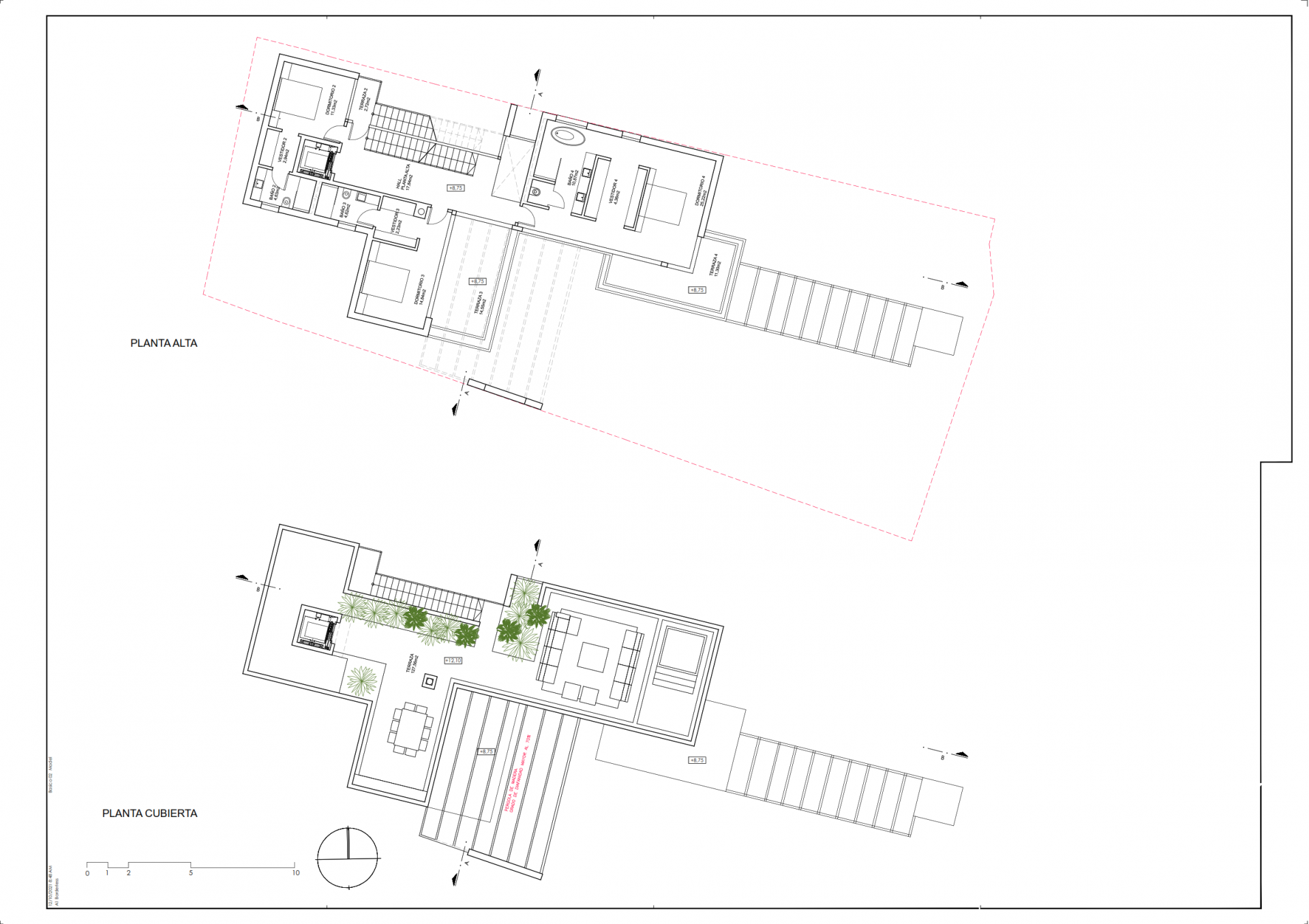 La residencia propuesta cuenta con cuatro plantas (principal, planta alta, sótano y solárium) y ofrece una superficie construida de 295,63 m². Los espacios interiores, cuidadosamente distribuidos, suman un total de 155,60 m², complementados con amplias zonas de estar exteriores de 140,03 m². El jardín paisajístico de 547,93 m² incluye una piscina privada y terrazas diseñadas para disfrutar durante todo el año.