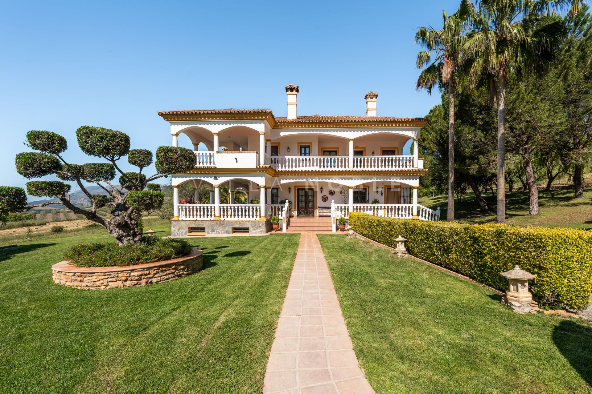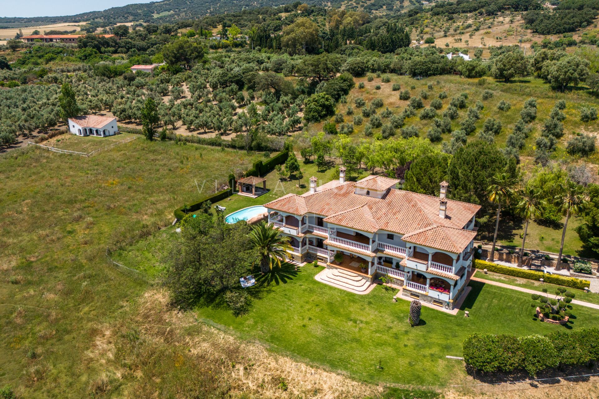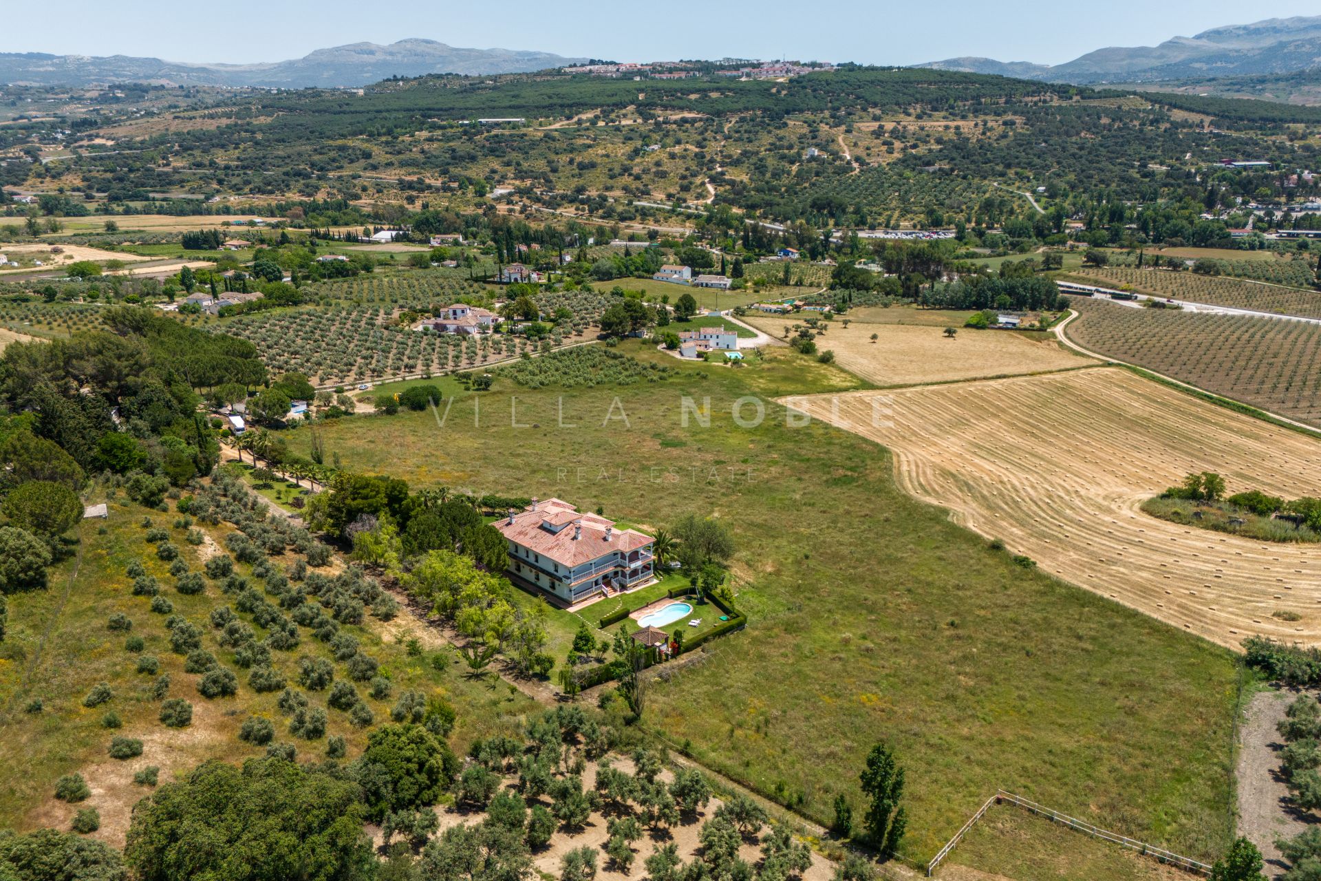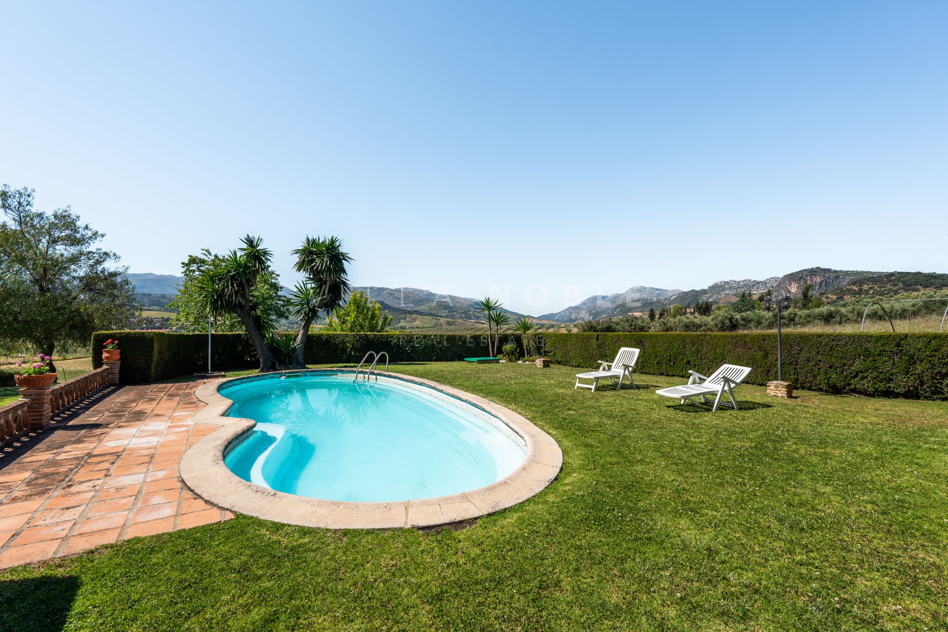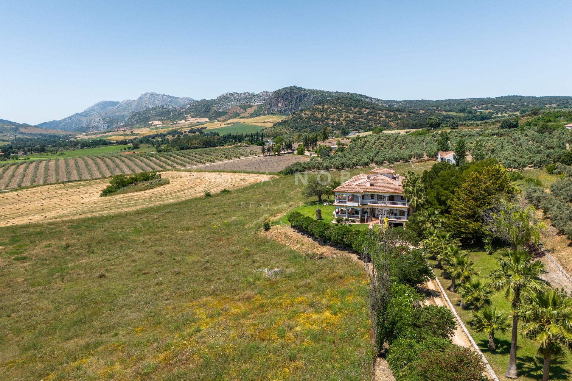 Se accede a la finca a través de un camino en buen estado, lo que ofrece privacidad sin sacrificar la proximidad al centro histórico de Ronda. La ubicación ofrece vistas panorámicas del campo circundante, los olivos y las montañas lejanas.