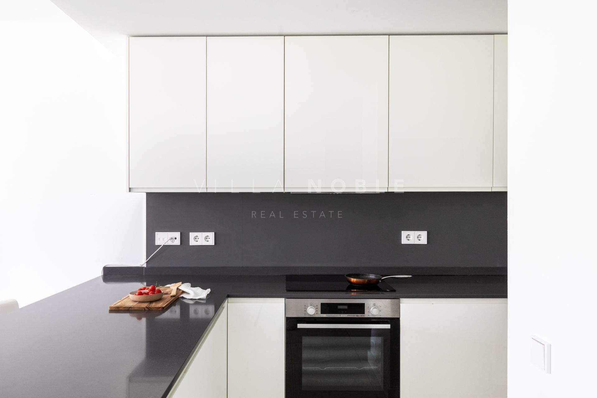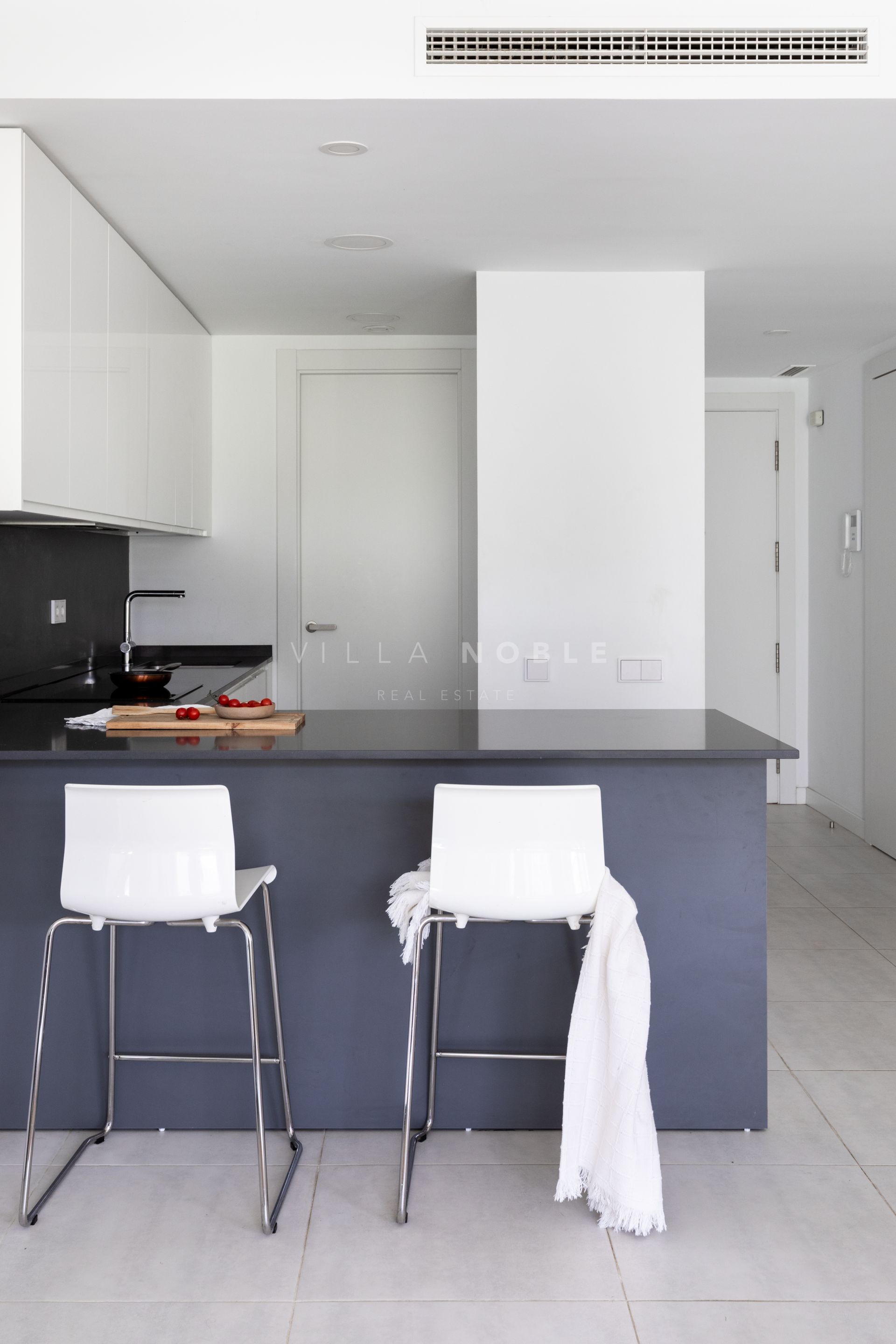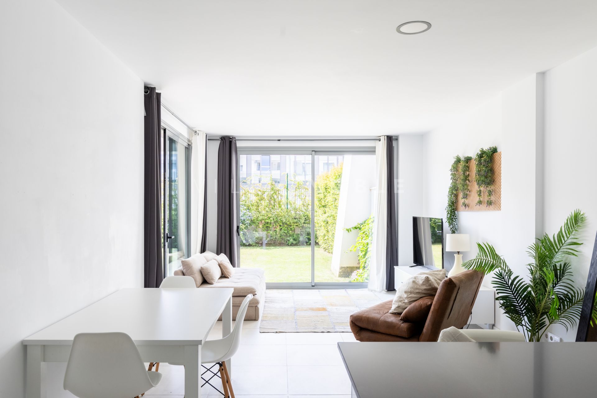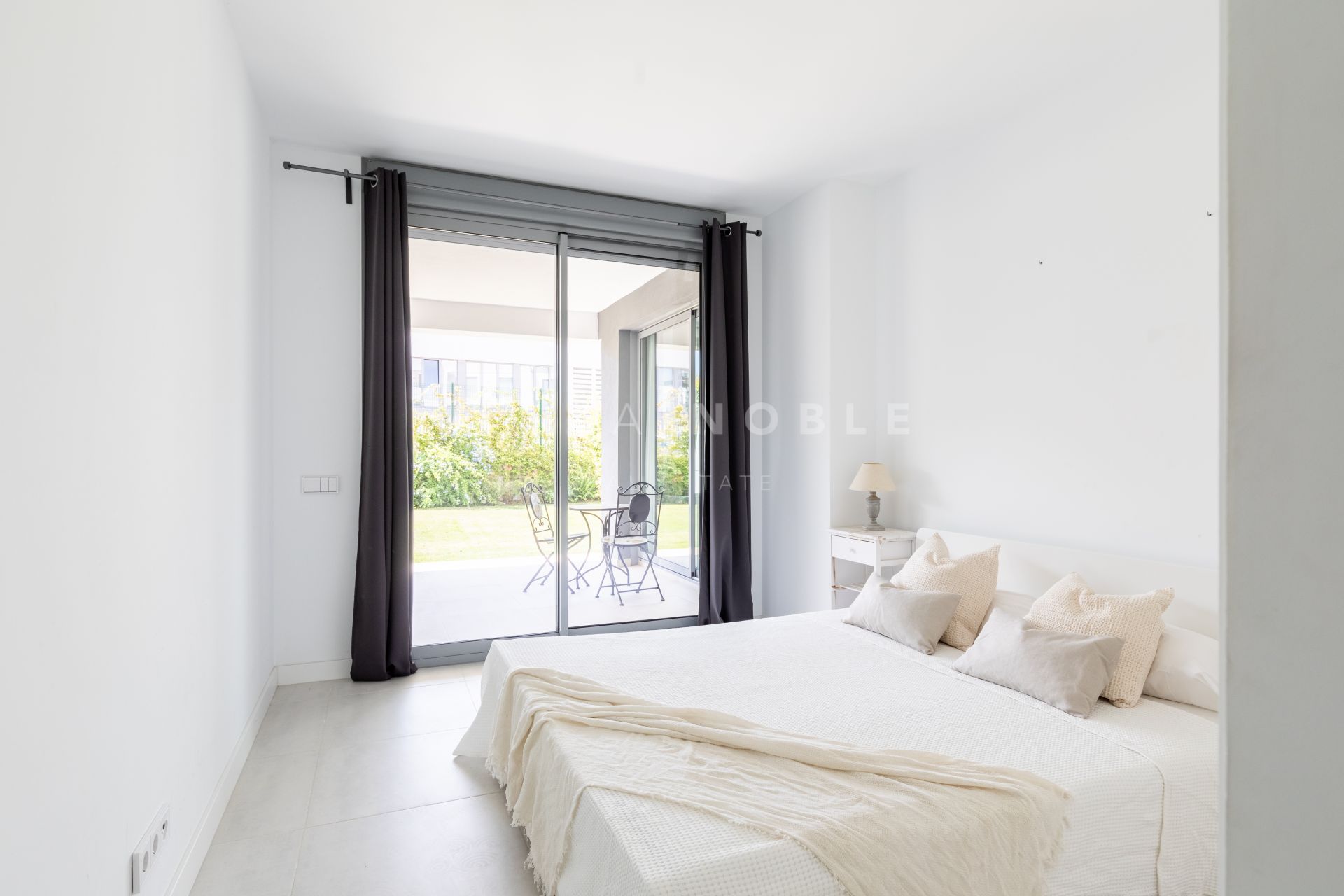 El apartamento cuenta con una distribución diáfana y luminosa, con amplios ventanales que dan a un amplio jardín privado. La cocina totalmente equipada, la elegante suite principal con baño en suite, la calefacción por aerotermia, el aire acondicionado central y la ventilación inteligente ofrecen un confort moderno y eficiencia energética. Incluye aparcamiento subterráneo y trastero privado.